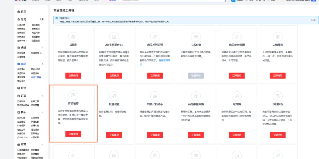 使用路径:京麦→商品→商品工具箱→详情装修