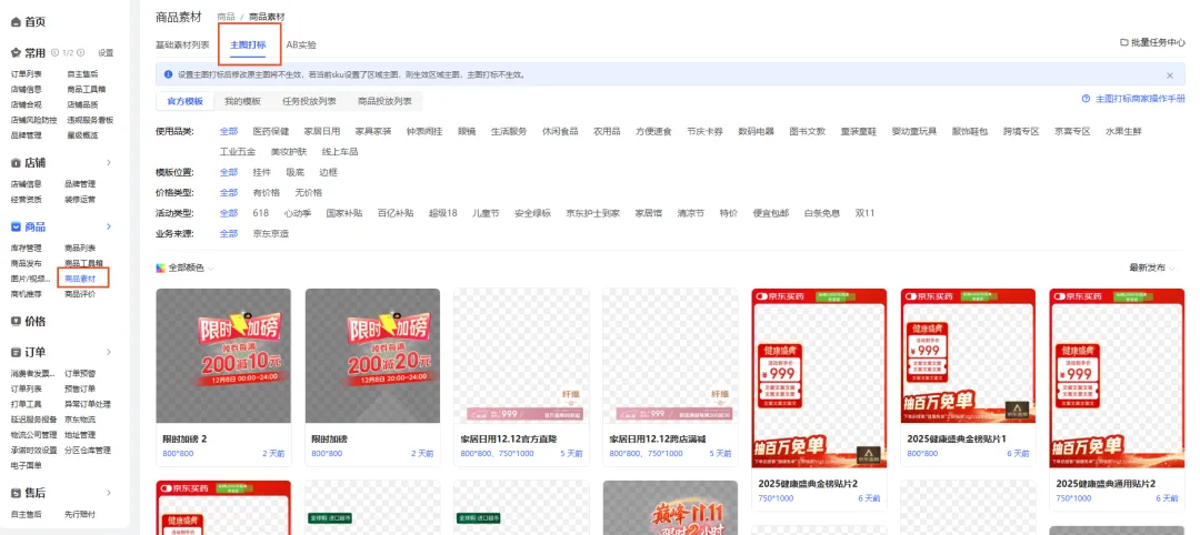 使用路径:商品→商品素材→主图打标