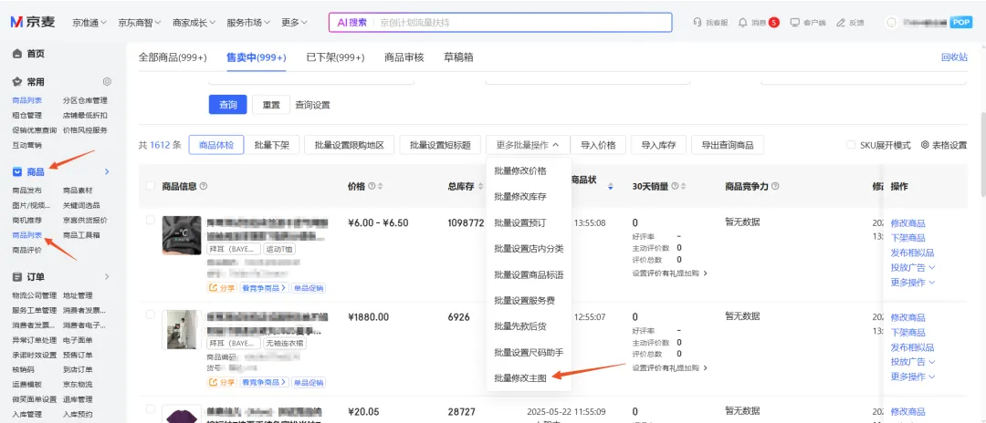 使用路径:商品→商品列表→更多批量操作→批量修改主图