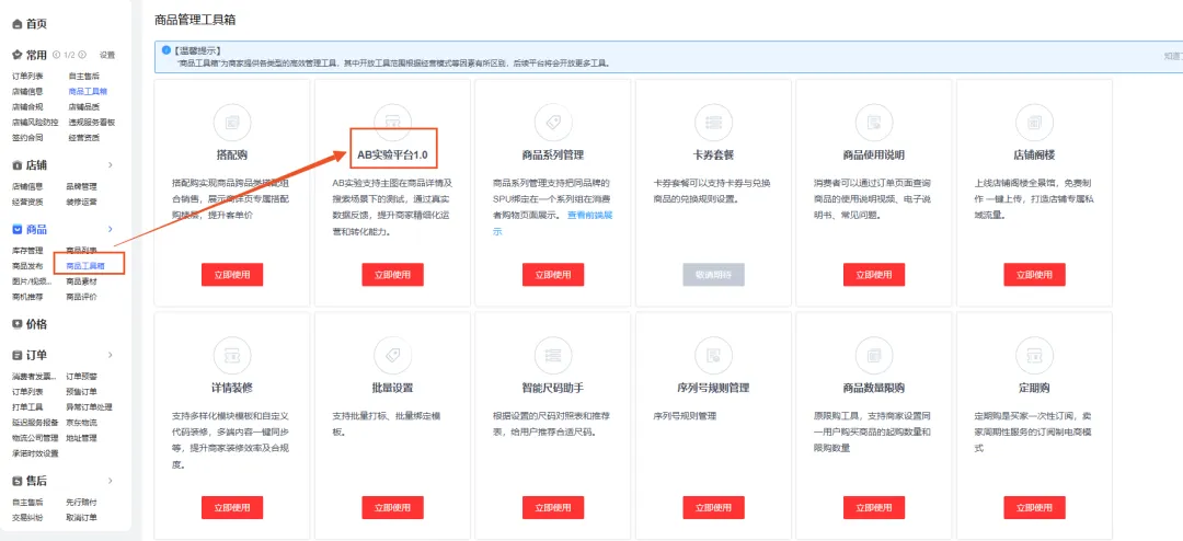使用路径:POP 京麦→商品→商品素材→素材实验→AB 实验