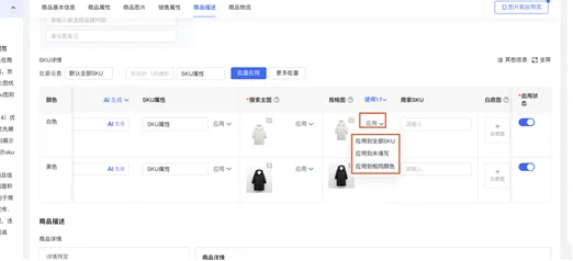 能力亮点:对于同一 SPU 下想使用相同规格图的 SKU 可一键复用,节省时间。