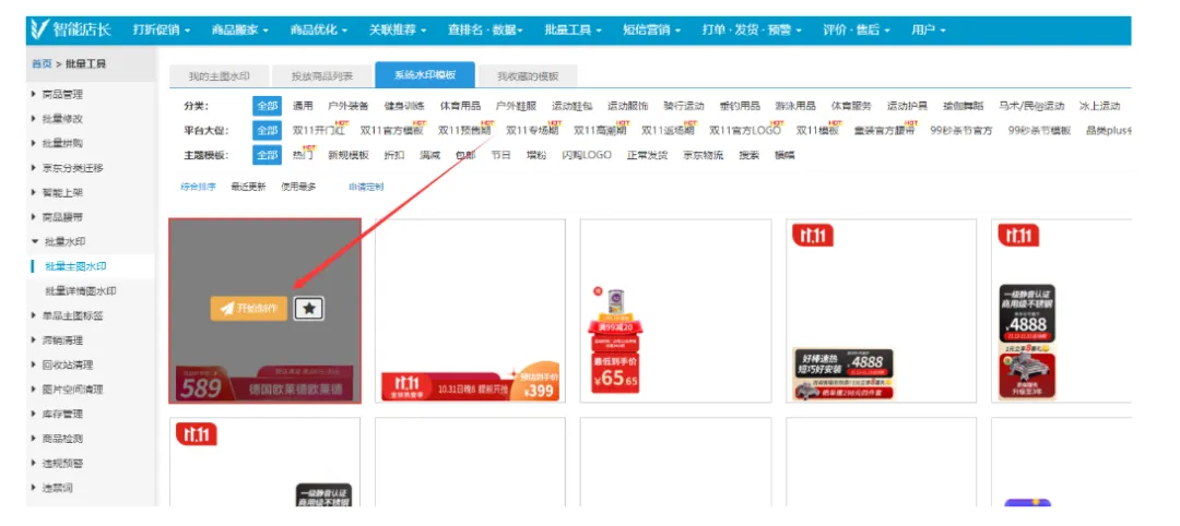 核心价值:海量模板可选,支持批量主图打标、批量定时打标、搜索推荐图批量打标。