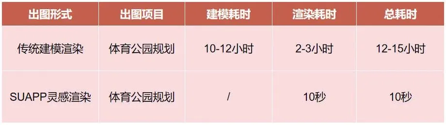 SUAPP灵感渲染从根本上改变了这一局面。与传统手动建模渲染流程相比,它的效率提升了4600倍——传统耗时13小时的工作被压缩到仅需10秒。