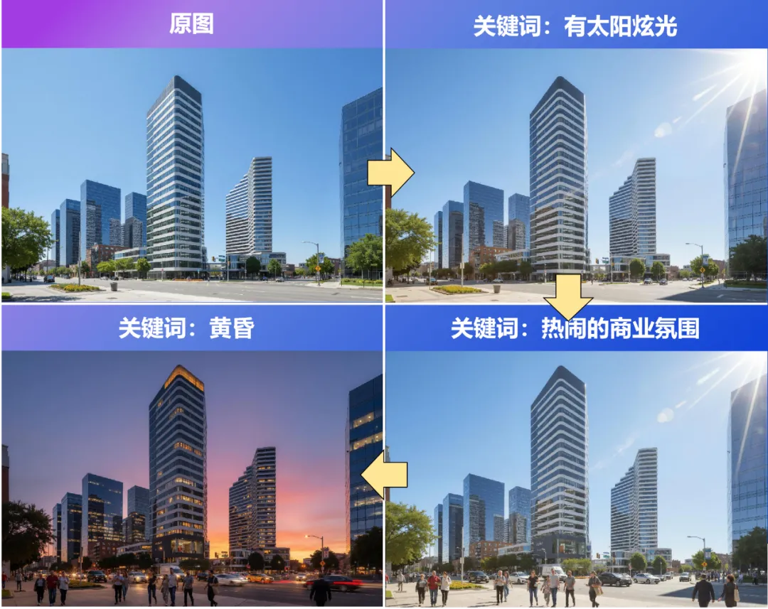 更令人印象深刻的是,同一项目的不同角度效果图能够保持风格和细节100%一致,这在传统渲染中很难实现。