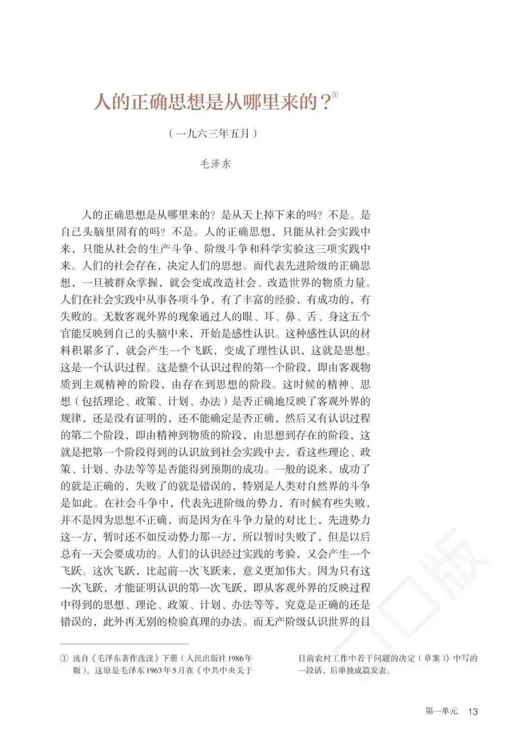 人的正确思想是从哪里来的?/毛泽东