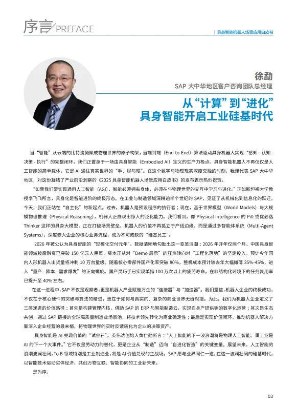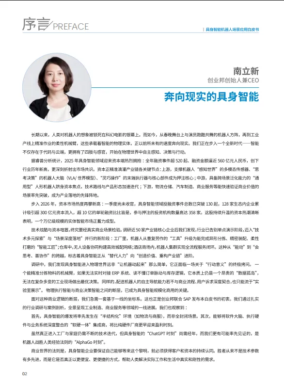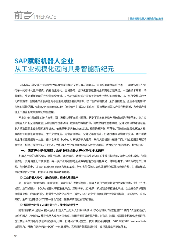 报告分享 | 2025具身智能机器人场景应用白皮书(内附下载) 以下为报告内容节选,查看更多内容可下载完整版PDF(文末附下载方式)。 报告分享 干货福利 如需获取完整报告,请关注“机博会武汉工业自动化展”公众号,点击“发消息”进入对话框回复“ 260325”下载。或点击下方“阅读原文”跳转官网查看。 免责声明:本报告来自中国信通院,仅作为分享用途,版权归原作者所有。图文如有侵权,请联系我们删除,感谢您的配合。文章观点和数据与实际情况可能存在偏差,文章仅供参考,不具有任何指导、投资和决策意见。 👆点击图片跳转链接查看详情👆