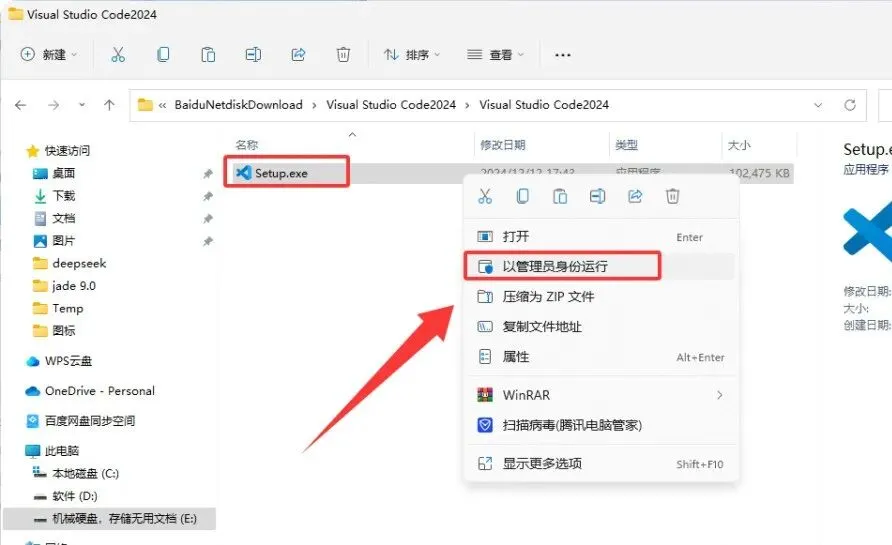 2.打开解压后的文件夹,鼠标右击【Setup】选择【以管理员身份运行】。