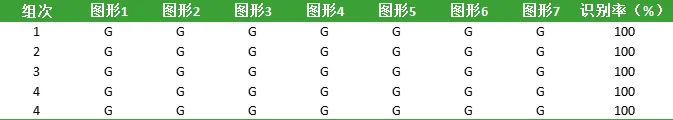 结果得到5组识别数据,判断程序对各图形的识别率。
