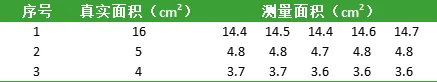 3个图形面积大小拉开一定差距。对该采样膜拍照5次,结果得到5组该3个图形的面积测算数据。
