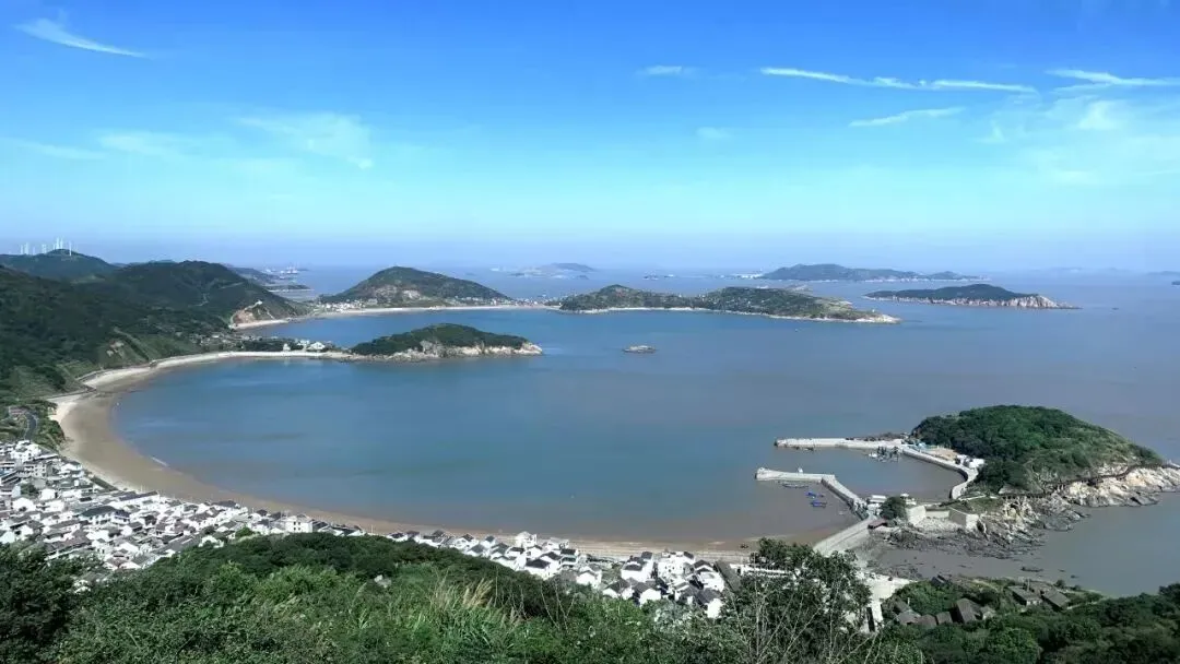 北边是植被茂盛的巍巍群山、南面是蔚蓝的大海和千姿百态的礁石岛屿,