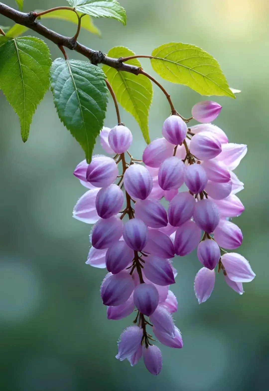 红白参差噙晓露,烟霞深浅晕桃腮。