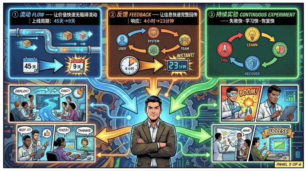 《凤凰项目》是DevOps领域公认的经典,以小说的形式讲述了技术债、运维危机和系统重生的故事。书里的场景非常生动:凌晨1点47分的P0故障、被HR从被窝里叫醒的VP、连续38小时没离开工位的首席架构师……