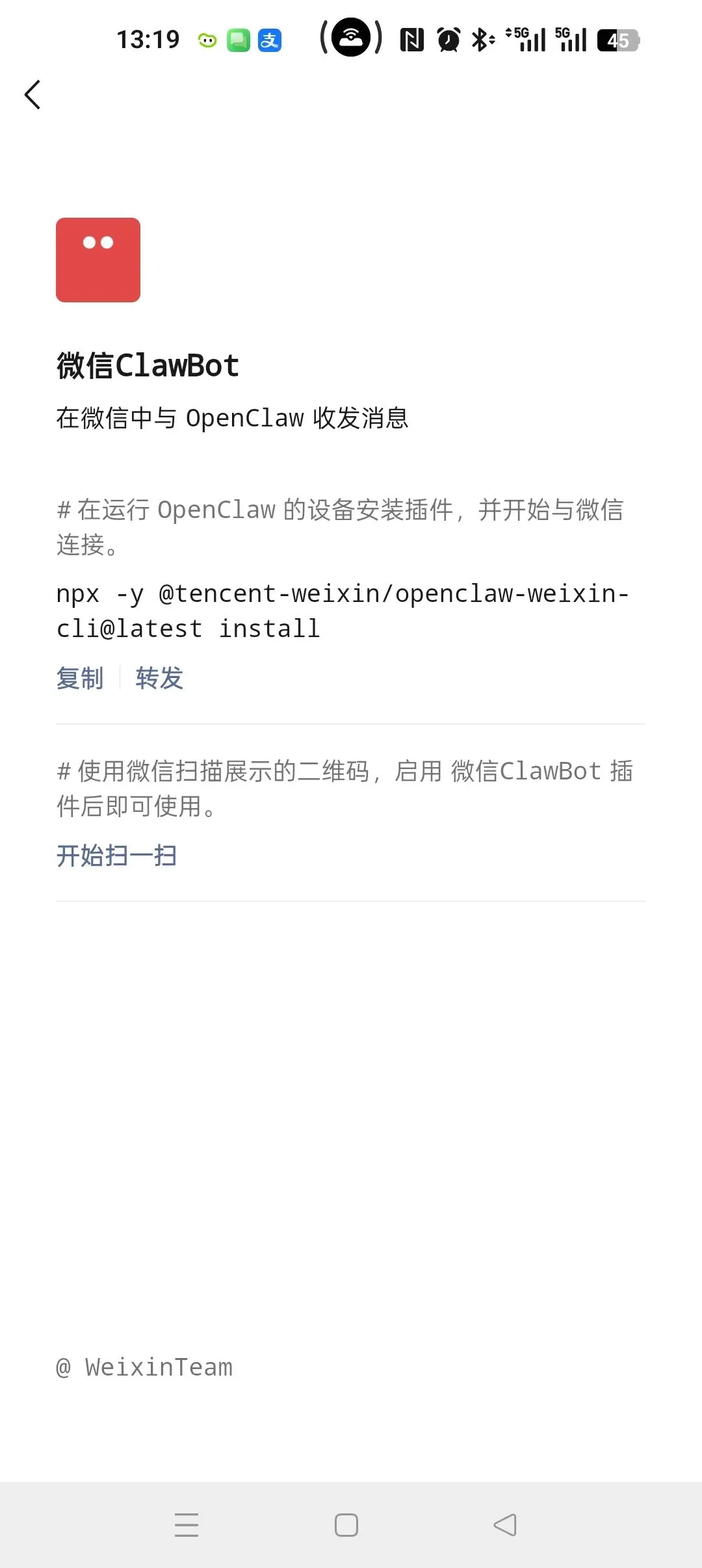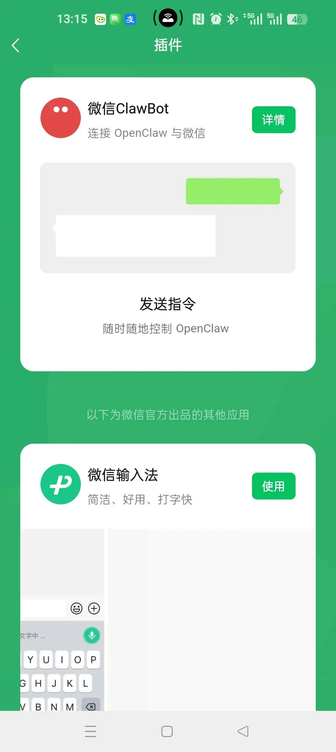 微信安卓版也可以接入openclaw了,刚试完还热乎
