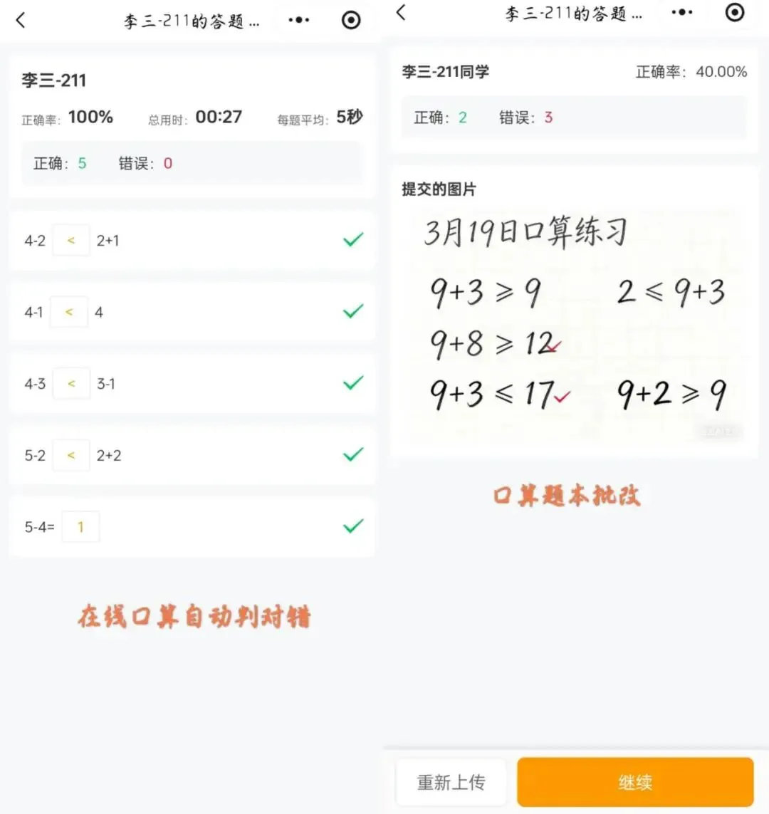 老师能一键发布语文英语的跟读、听写、背诵任务,系统自带标准发音示范,通过 AI 语音评价技术,从准确度、完整度、流利度三个维度给学生录音打分,哪里读错了标得明明白白,不用老师逐个听;数学口算练习支持按知识点自动出题,学生在线做或拍照上传手写答案,AI 3 秒就能改完,还能生成错题报告,哪个知识点弱一目了然。