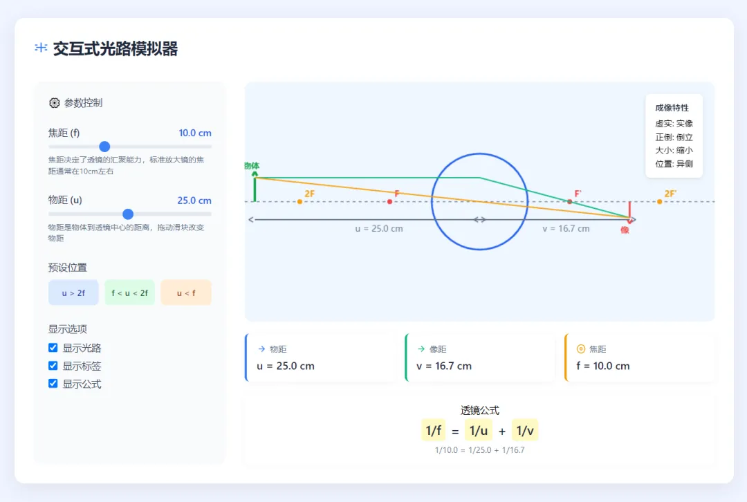 物理化学老师看过来!凸透镜成像、杠杆原理这些实验,用豆包能快速生成模拟动画,参数还能自己调,比静态图好懂多了。动画还能下载到本地,上课直接用,学生理解起来更轻松~