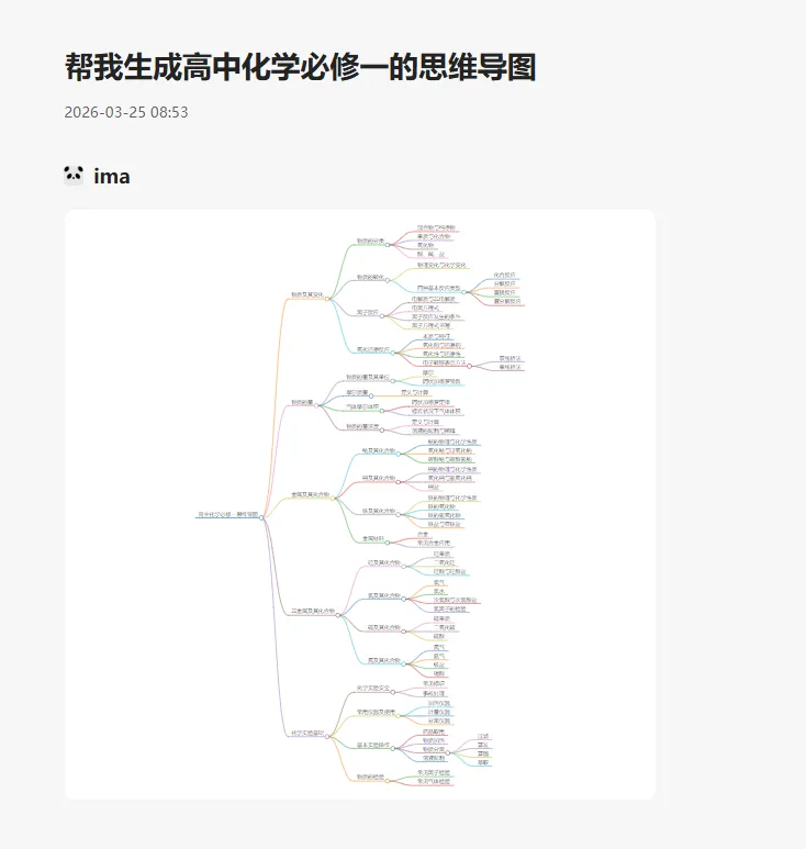不管是 PDF、网页还是 PPT,把资料扔给 ima 知识库,10 秒就能生成清晰的思维导图。复习总结、日常教学用它理思路超方便!还能建私人教学库,把课件、题目都传上去,备课直接问它 “根据这份 PPT 出几道题”,不用自己苦哈哈整理~