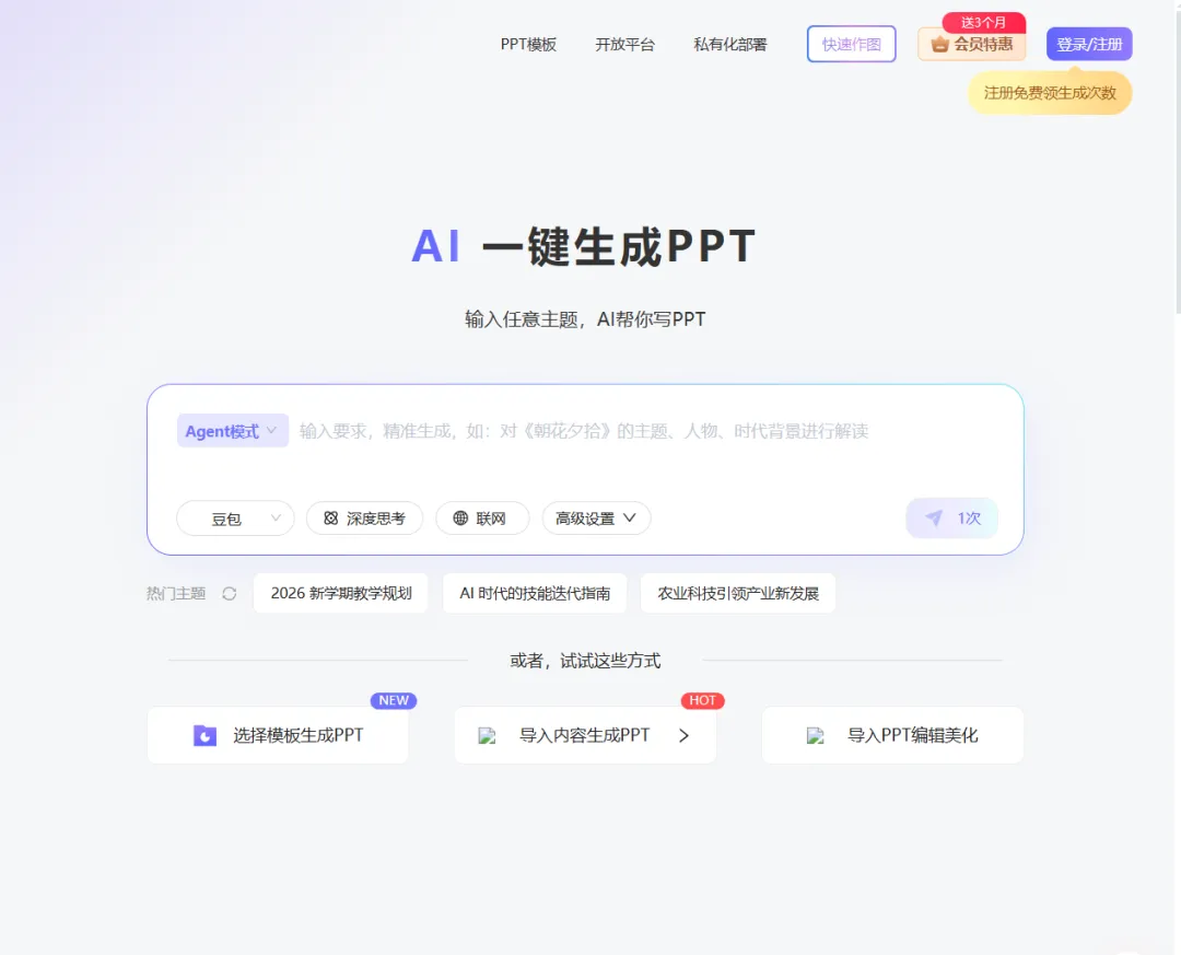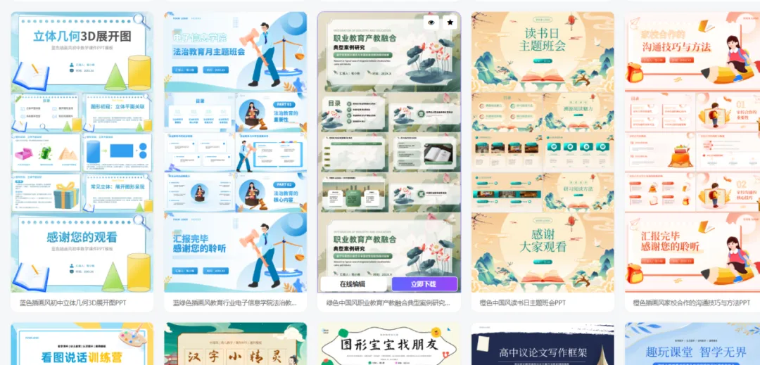 PPT 是老师绕不开的坎?笔格输入主题就能生成结构化大纲,支持上传文档 AI 排版,有几百套教学专属模板和 20 万 + 商用素材。