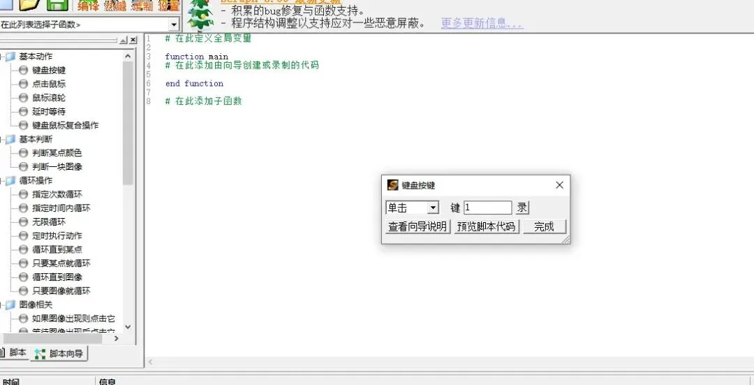 首先,修复了之前积累的一些已知BUG,并对函数库进行了优化和补充,用起来更稳、功能更全。其次,对程序的底层结构进行了调整,目的是为了更好地应对一些外部环境(比如某些游戏或软件)对脚本工具的恶意检测和屏蔽,让脚本在“敌后”环境运行得更隐蔽、更稳定。具体的优化细节可以去官方帮助区的置顶帖里查看。