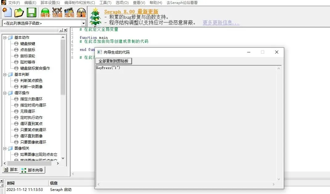 sSeraph脚本编辑器,堪称是“脚本界的瑞士军刀”,尤其是能帮你轻松实现鼠标键盘的自动操作,类似“鼠标点击器”的高级版。它的核心亮点是能让你直接设置一个按键,然后就自动生成对应的脚本代码,用起来“贼快”,堪称“懒人生产力神器”。