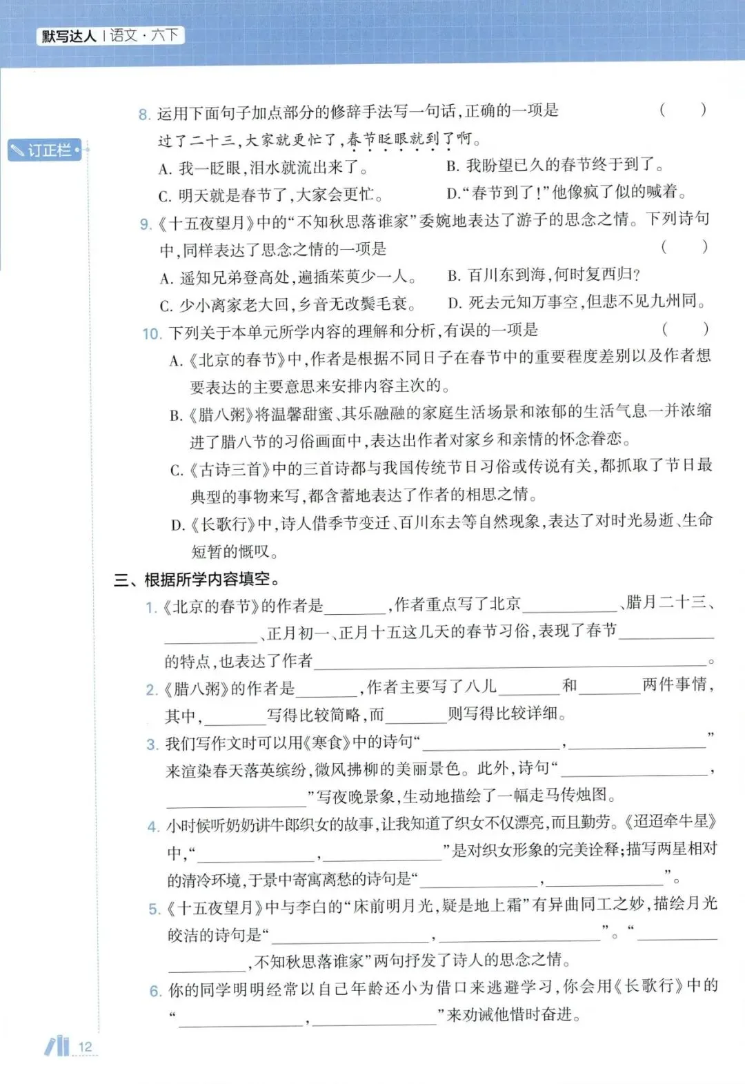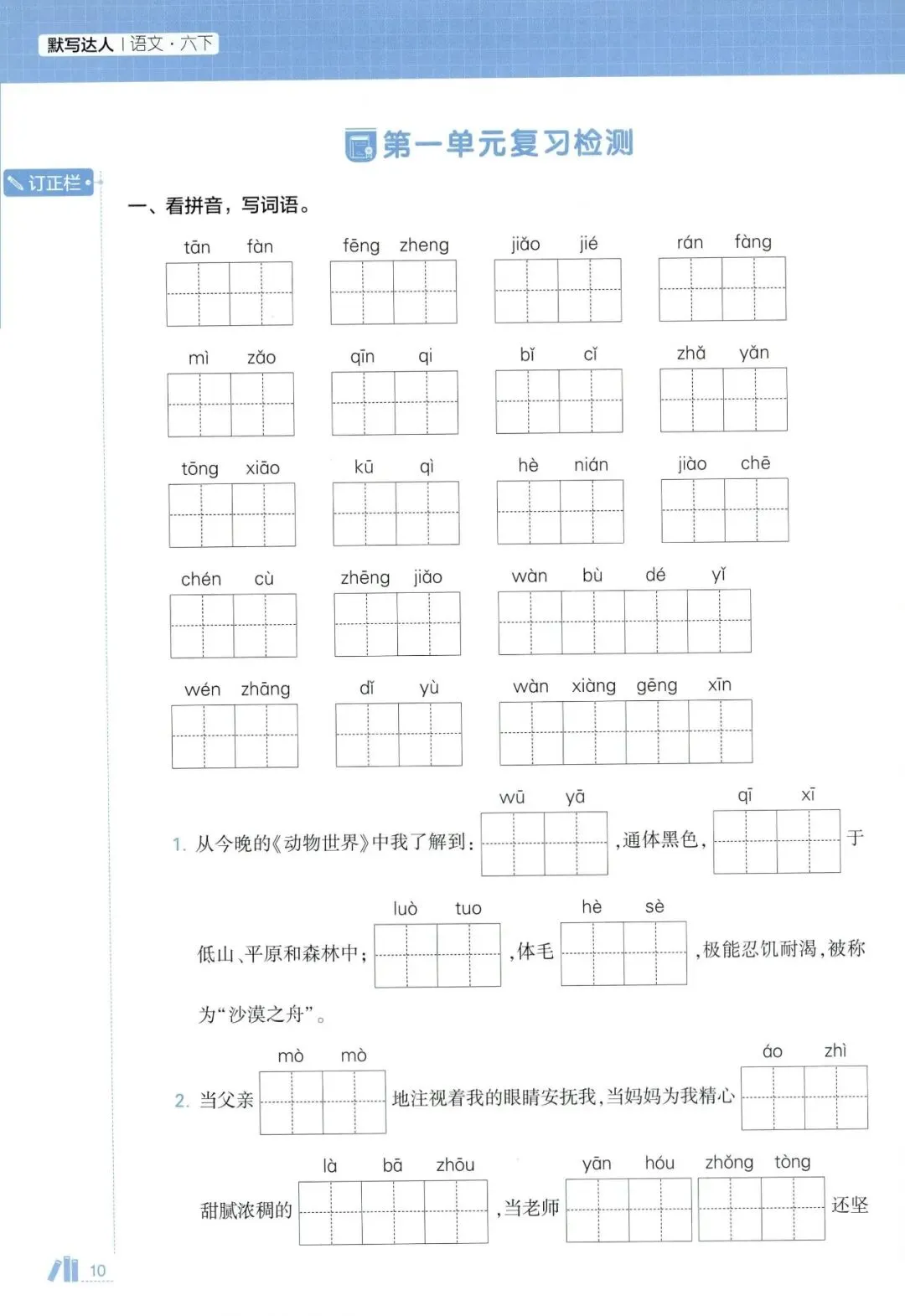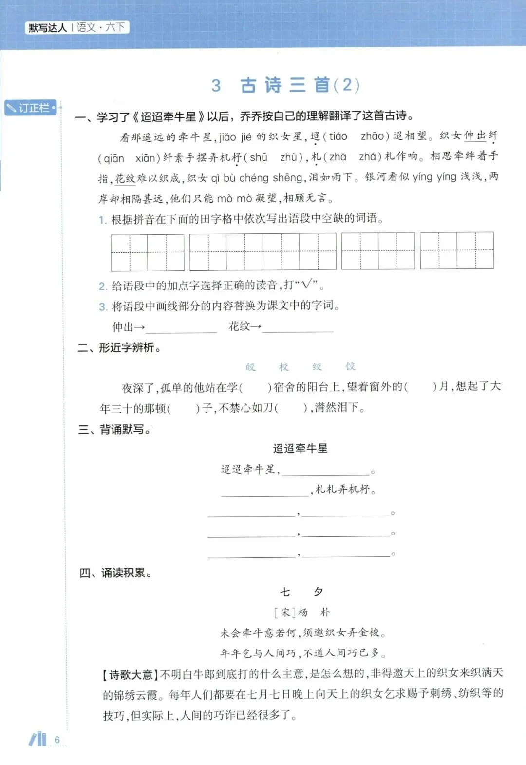 六年级语文下册《5星默写达人》(领高清PDF打印版)