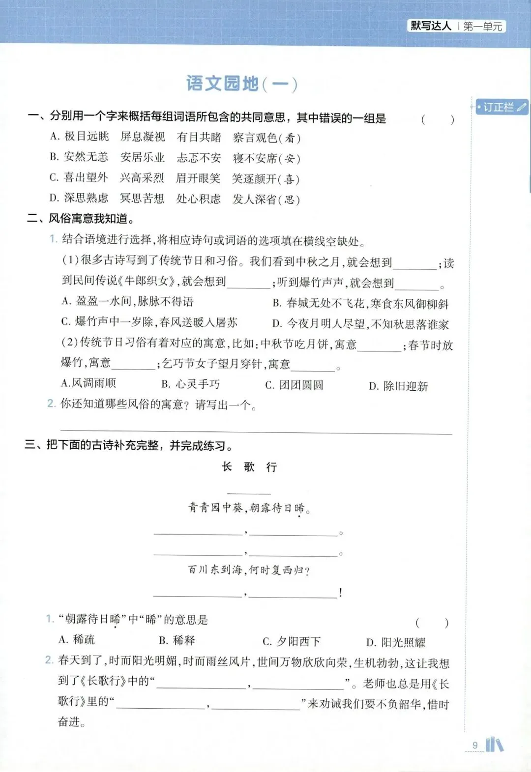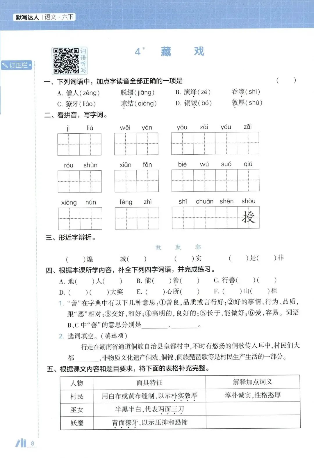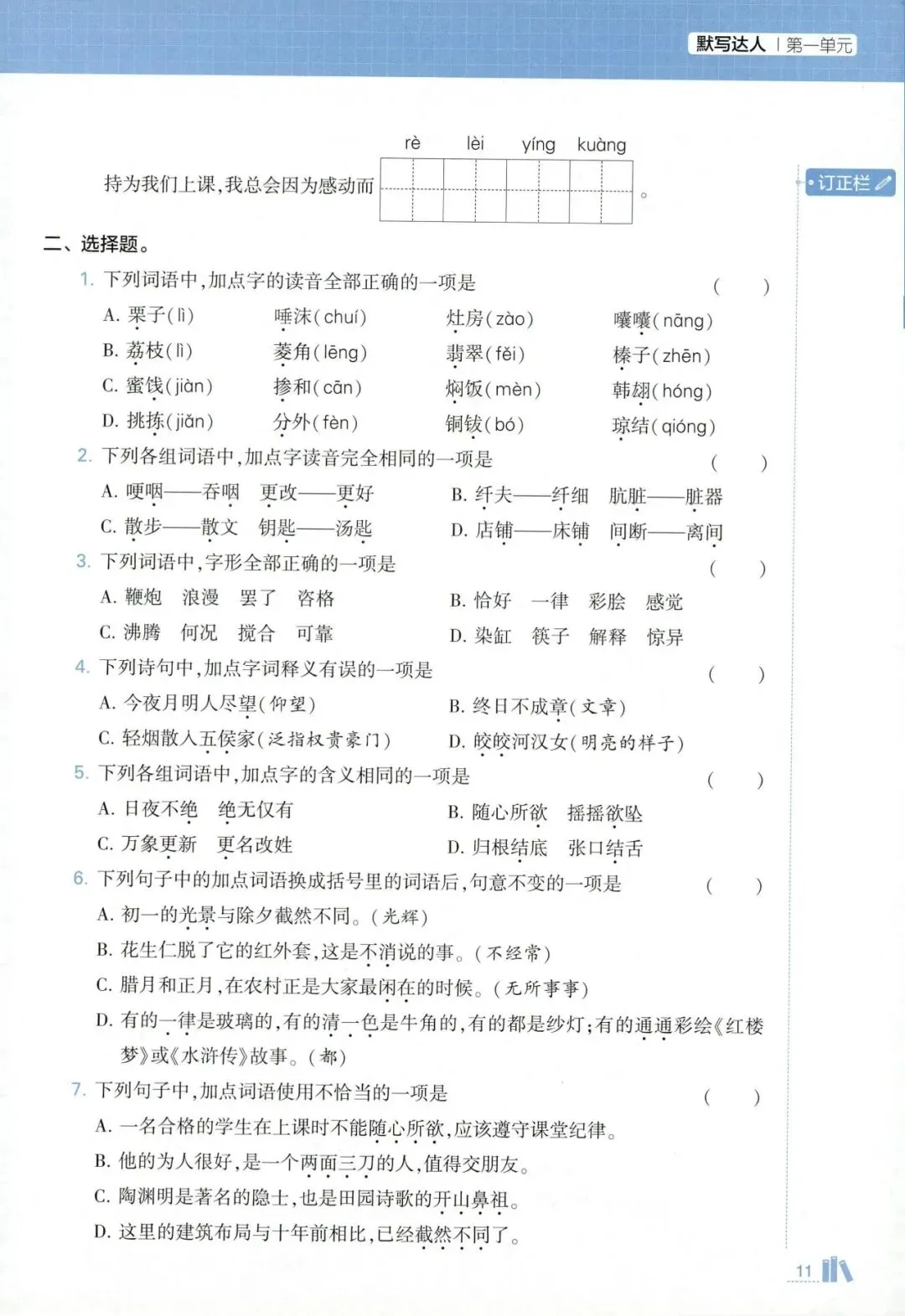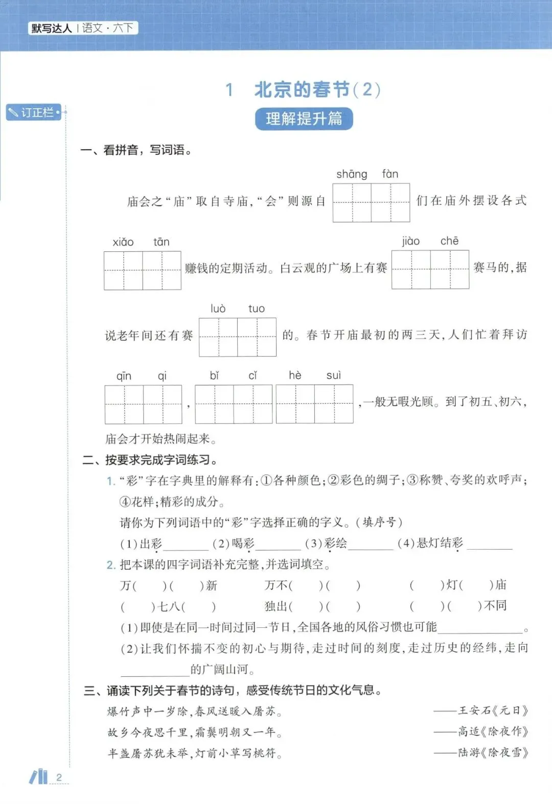 六年级语文下册《5星默写达人》(领高清PDF打印版)