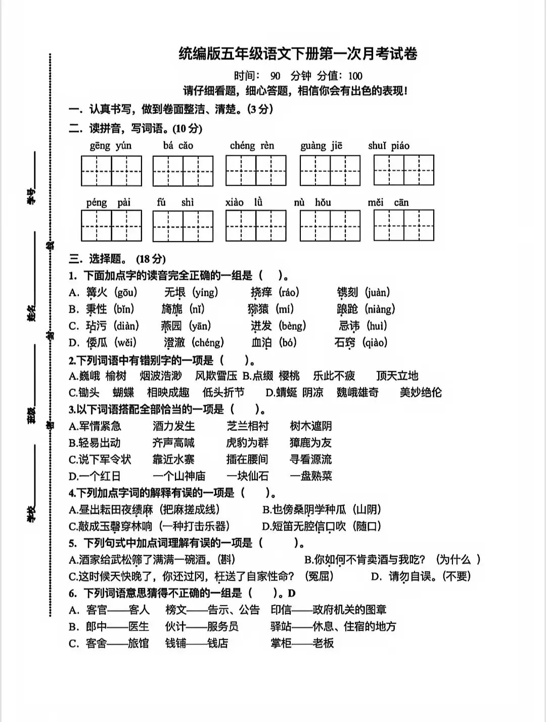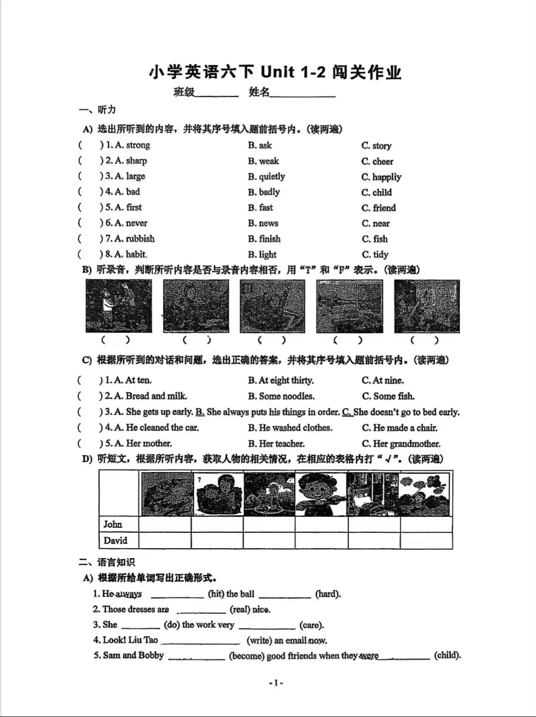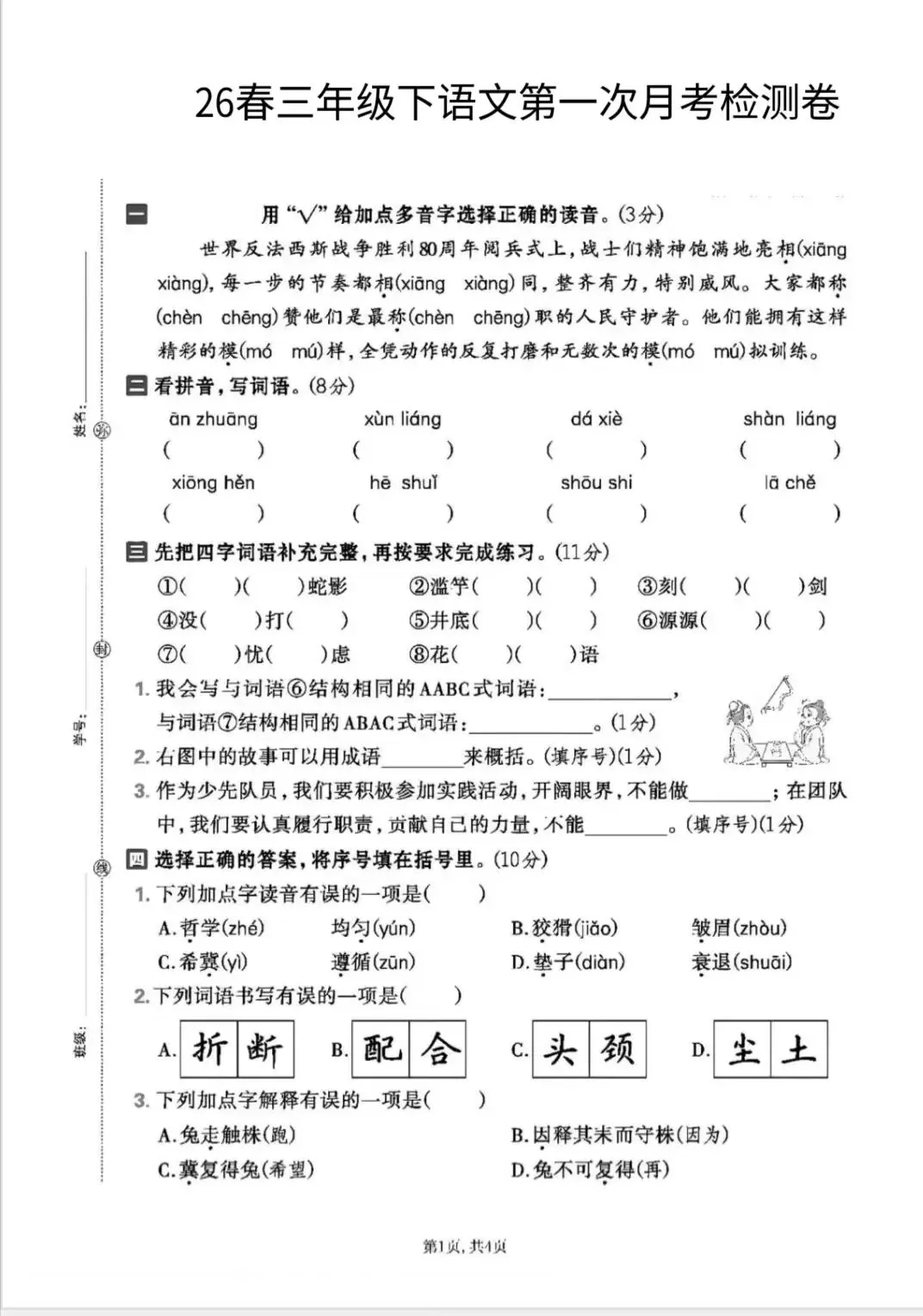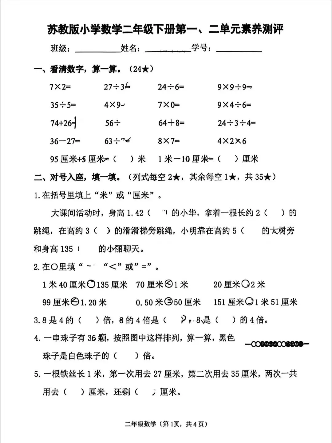 苏教版小学语数英第一次月考卷,电子版可打印
