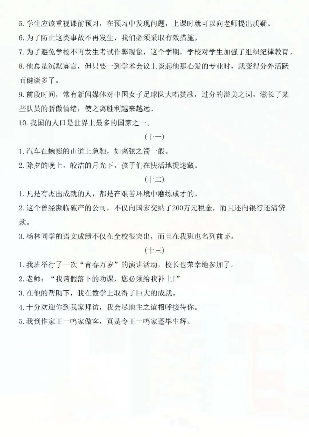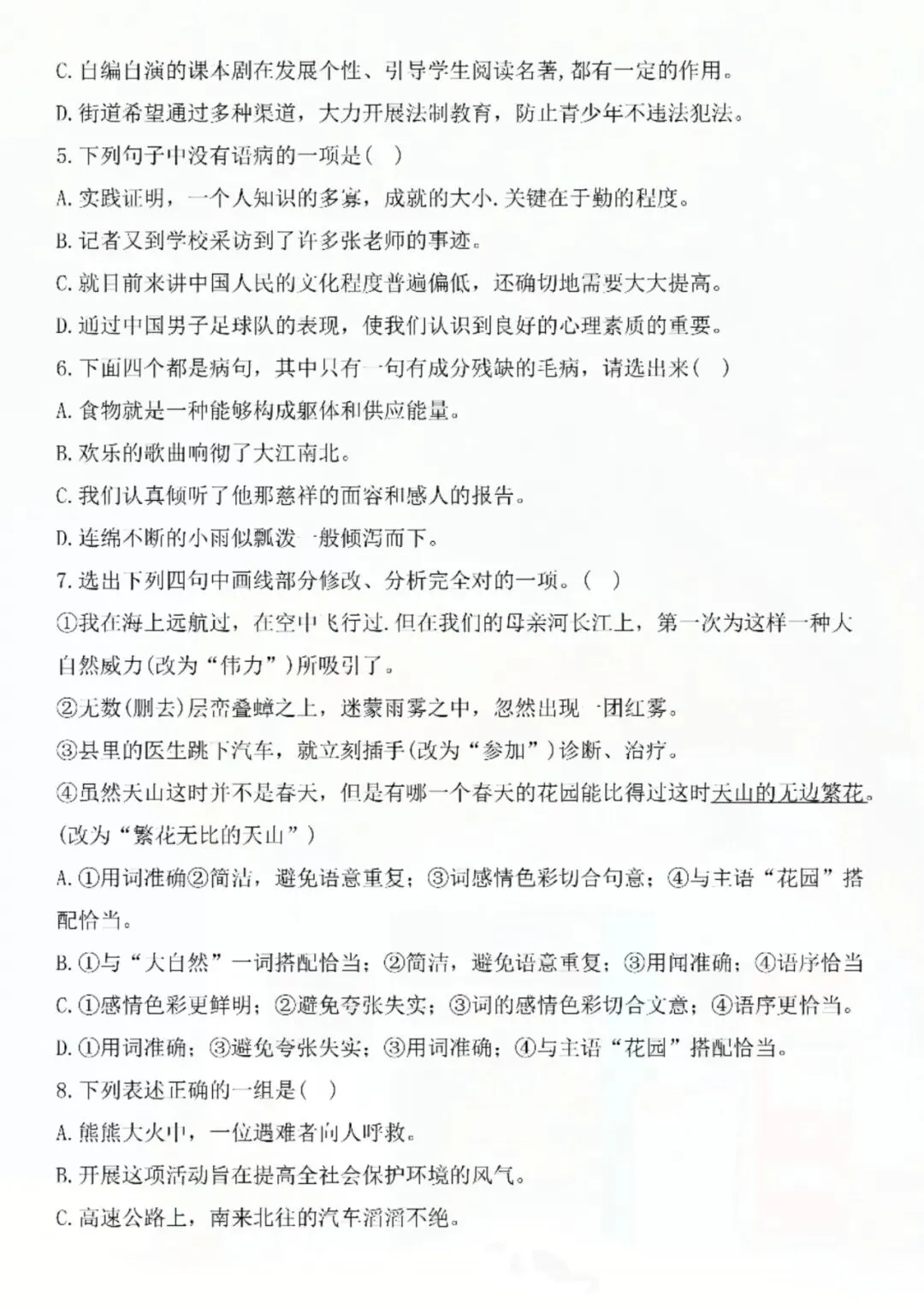 七年级下册语文修改病句专题 电子版可打印
