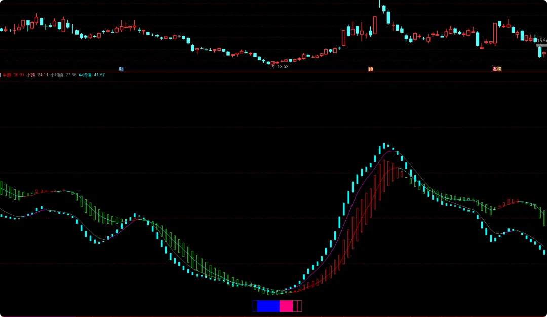 IF(小均值>=REF(小均值,1),小均值,DRAWNULL),COLORMAGENTA;