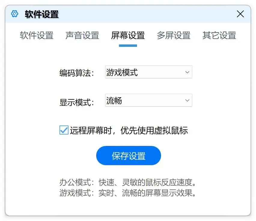 针对不同场景的双模式设计更显贴心!办公模式优先保障流畅操作响应,文字编辑、表格处理延迟低至 10ms,剪贴板同步秒传文件;游戏模式则解锁高帧率流畅体验,远程玩游戏也能告别卡顿,比单一模式的远控软件实用太多!