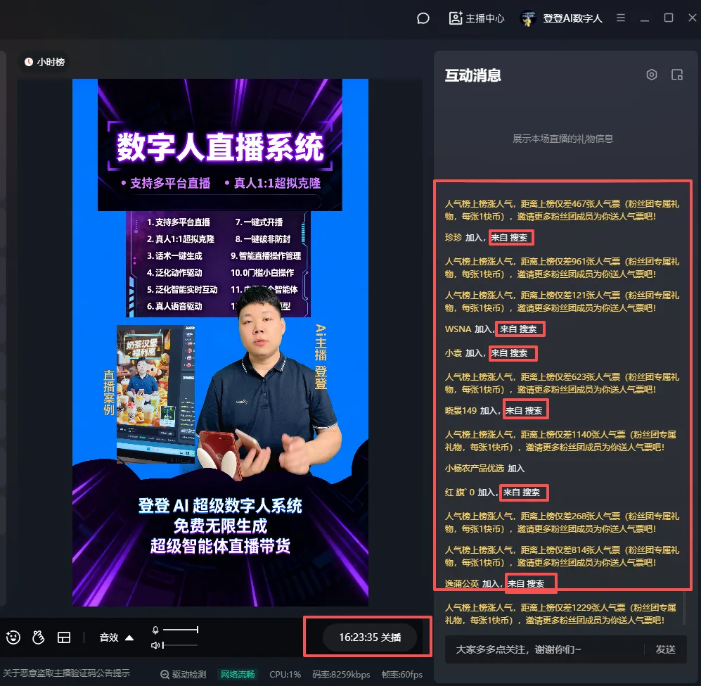 内容自然度与唯一性:采用TTS(文本转语音) 与ASR(自动语音识别) 技术克隆的声音,其相似度可达95%以上。更重要的是,话术的智能优化能力能有效避免内容重复。实测显示,登登AI系统在8小时直播中,话术重复率低于3%。