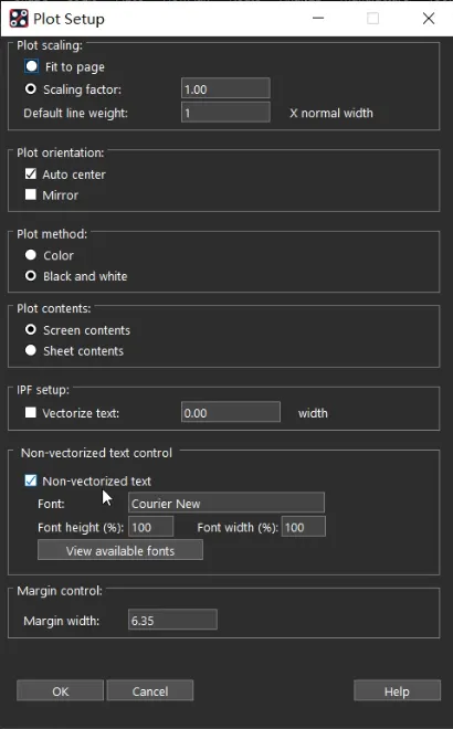 关键操作:在【Non-vectorized text control】区域,勾选 【Non-vectorized text】 选项,并选择一种通用字体(如 Courier New)。