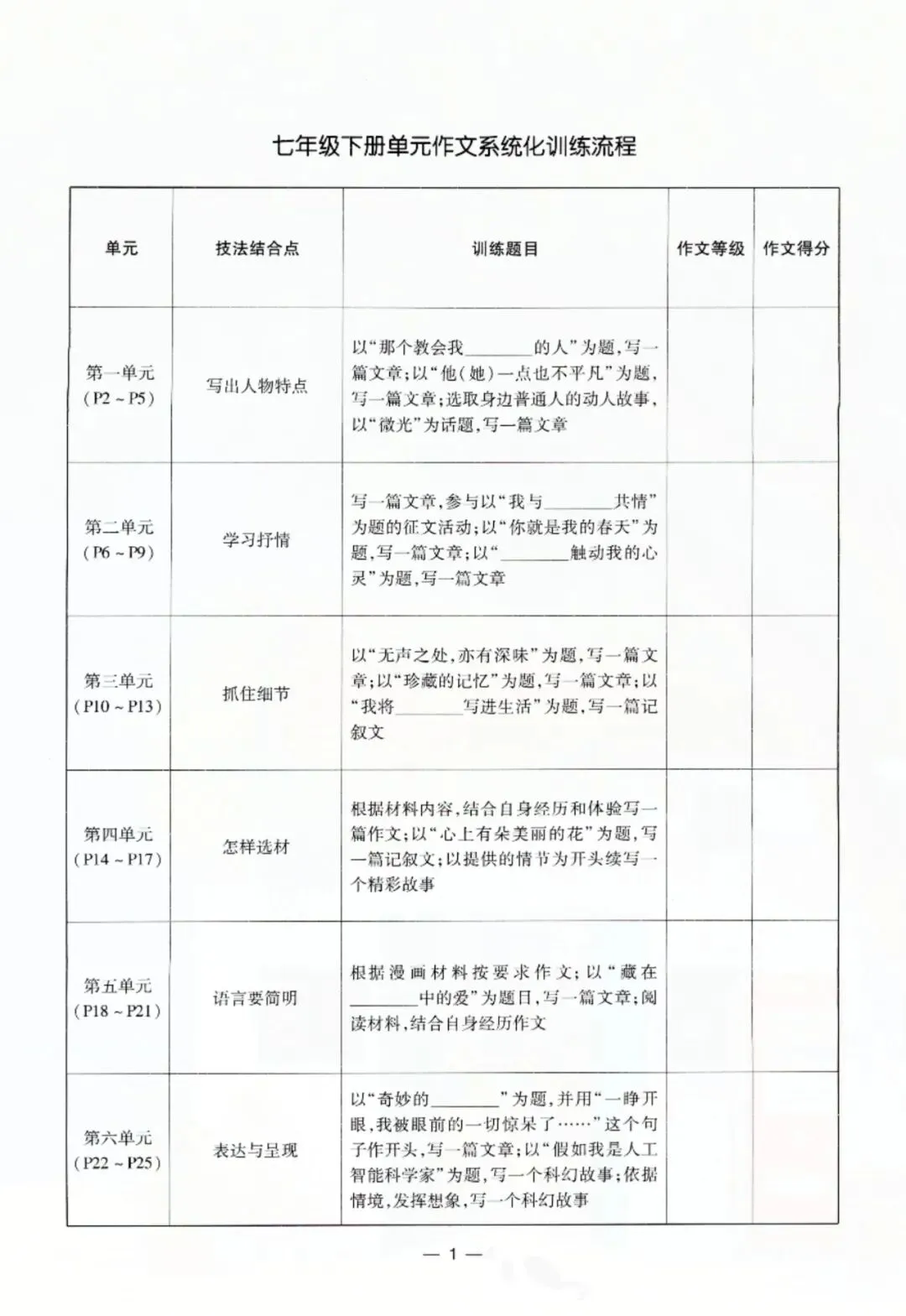 今天老师给大家整理了:七年级下册语文每课作文专项训练 电子版可打印!