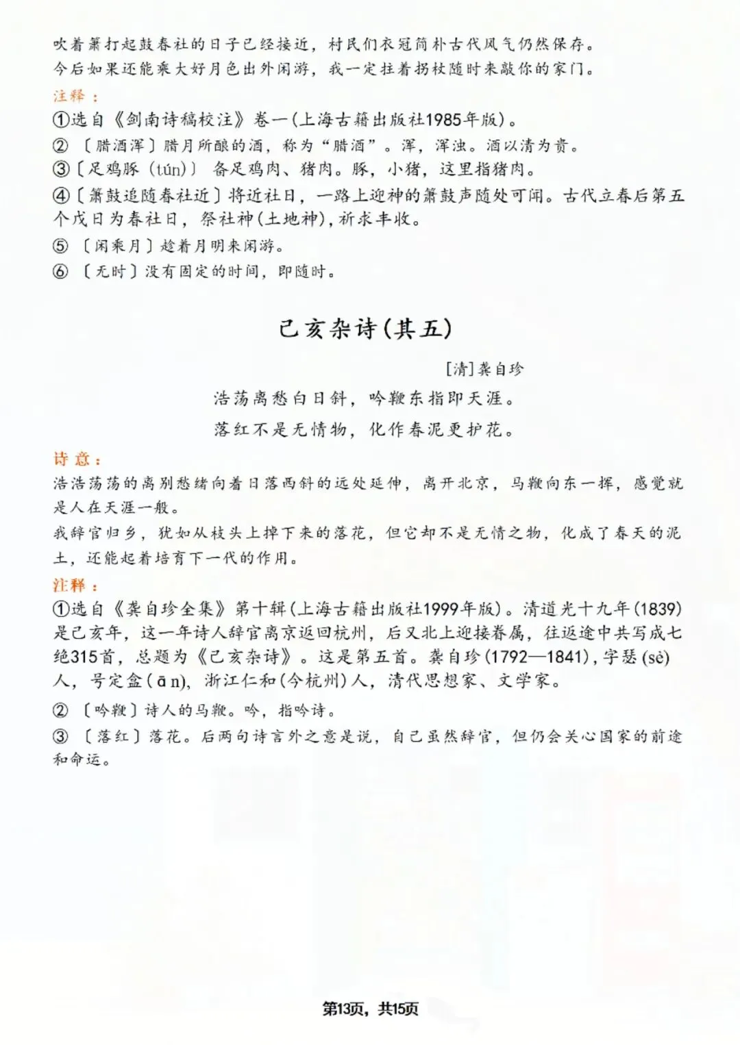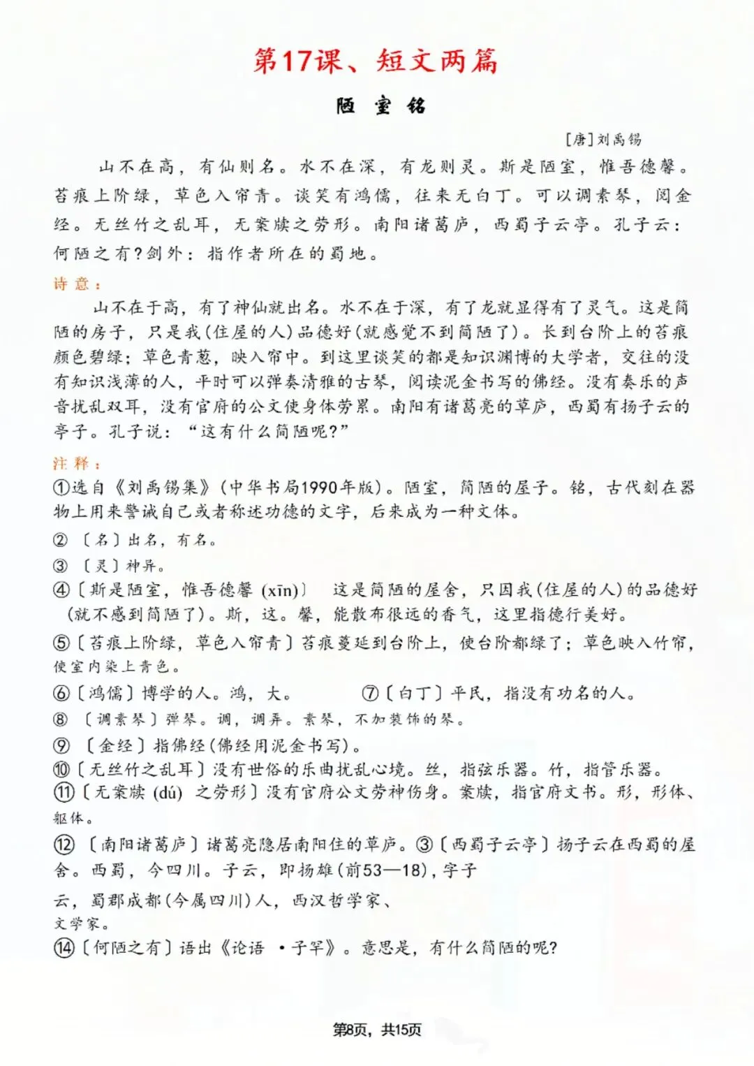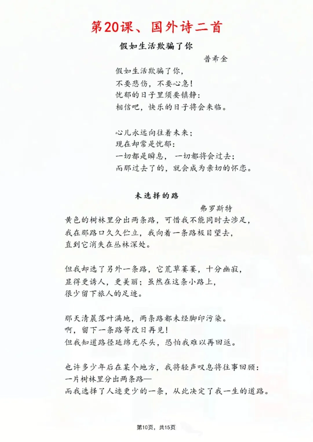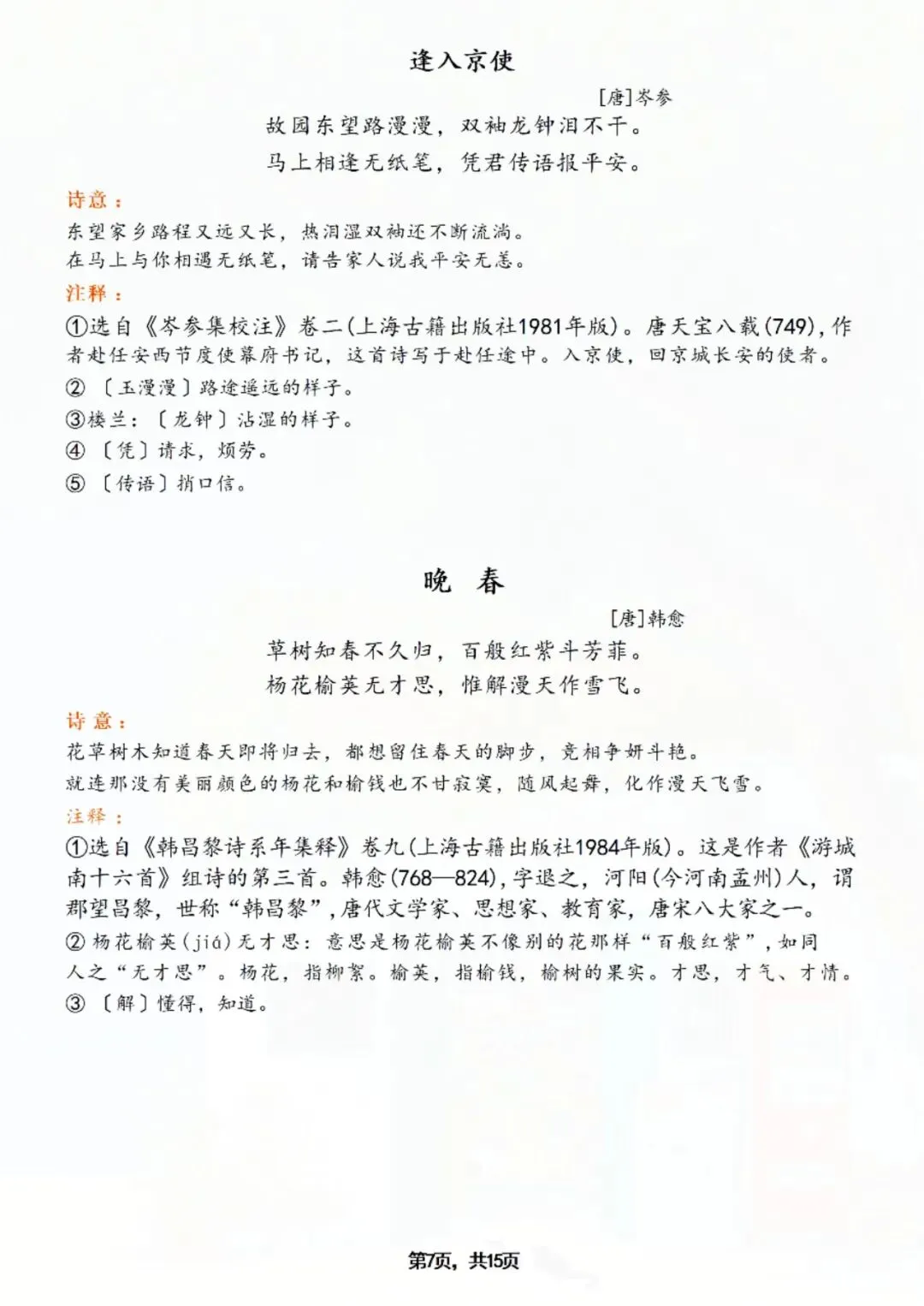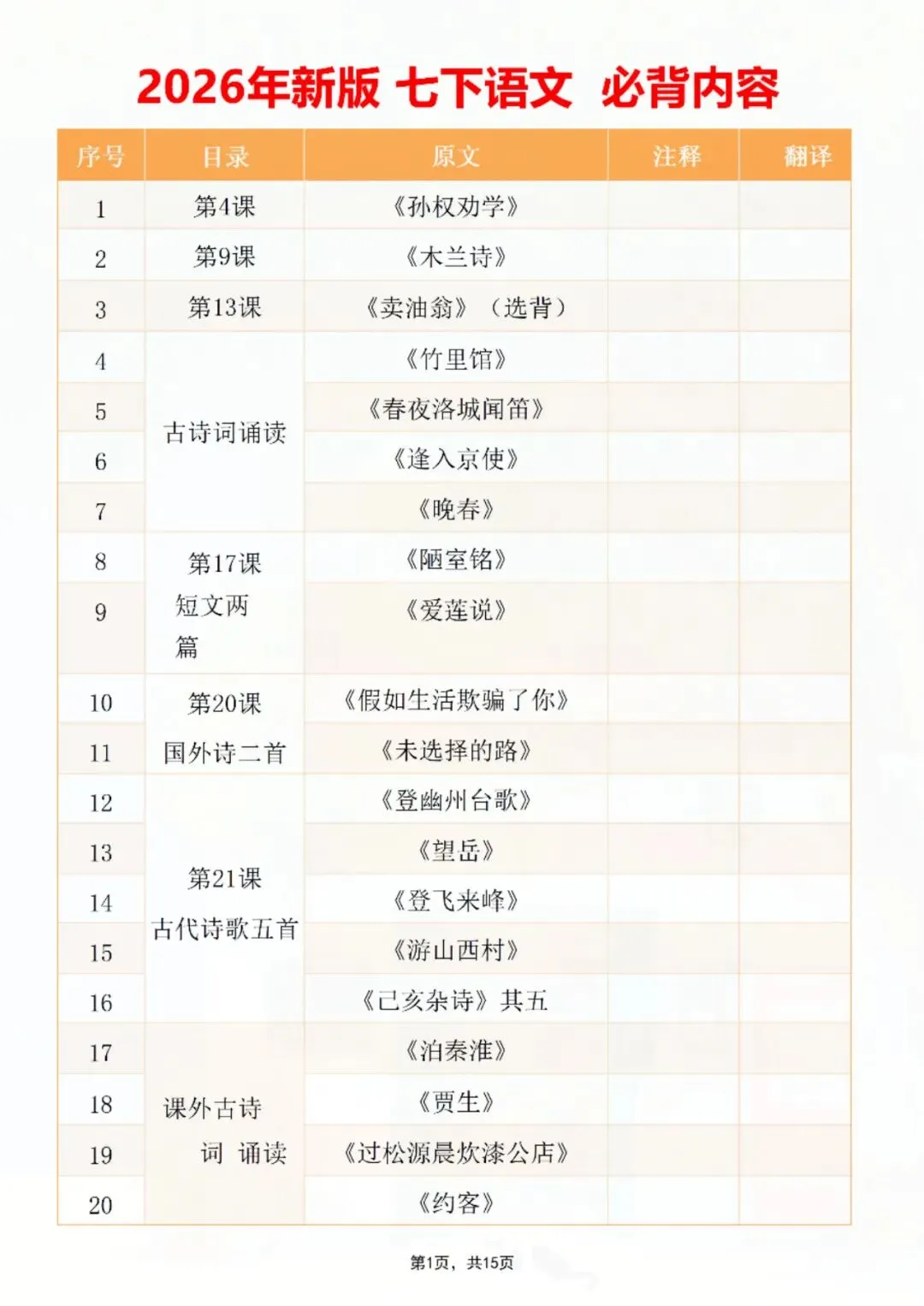 今天老师给大家整理了:七年级下册语文必背课文 电子版可打印!
