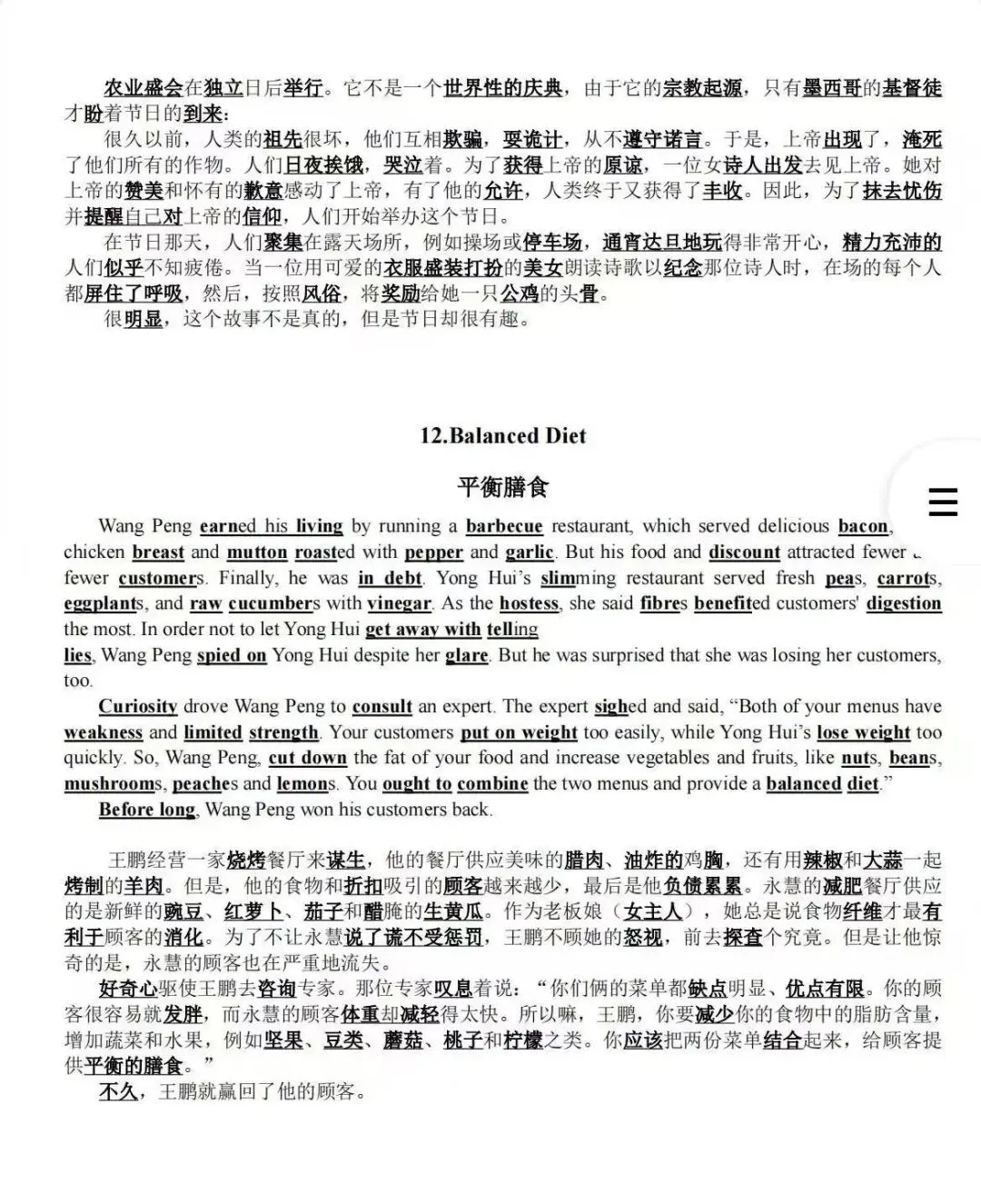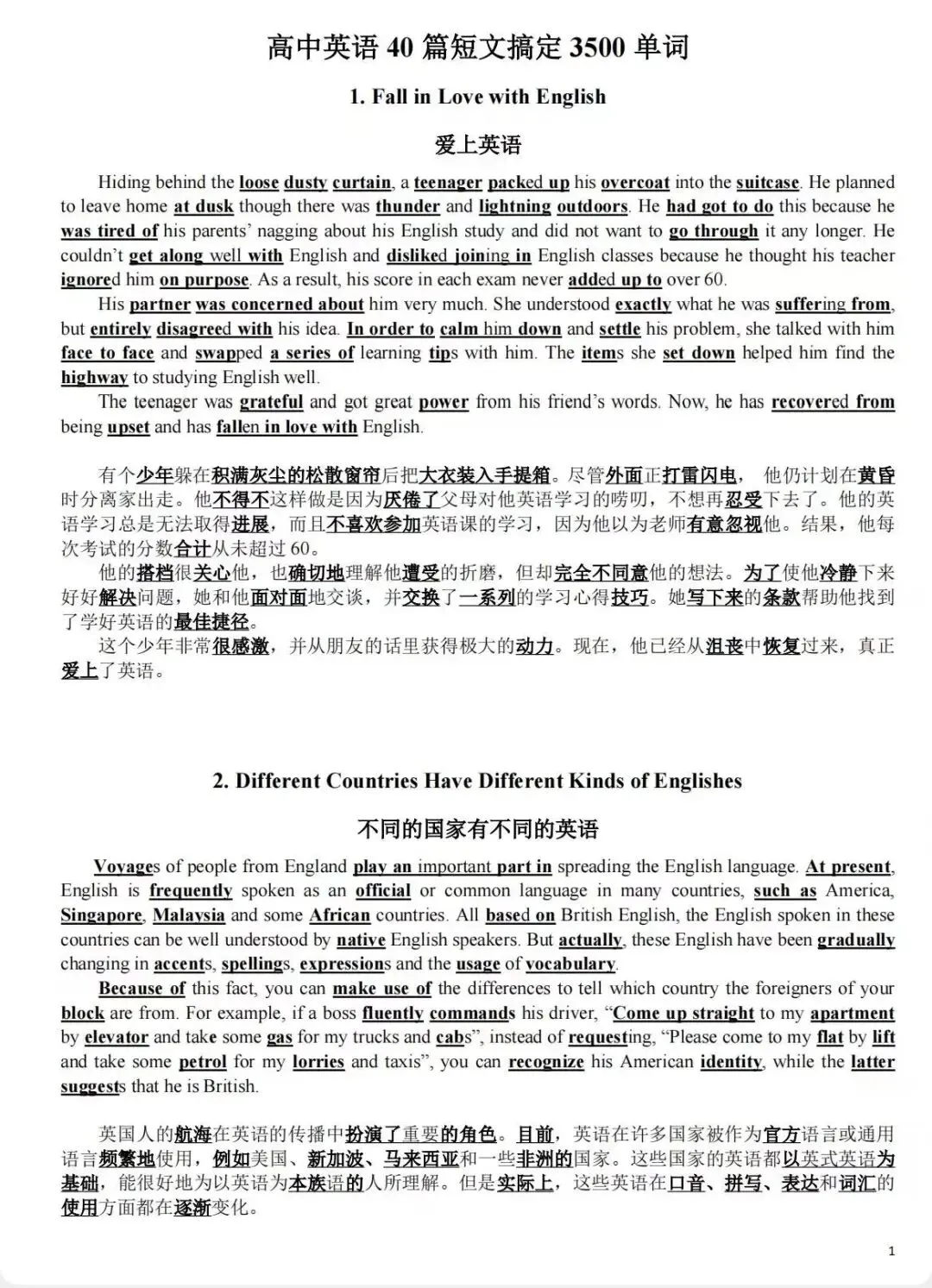 高中英语40篇短文搞定3500单词(可打印) 汉堡给同学们分享40篇趣味短文,将高中英语3500词融入生动语境。从爱上英语到平衡膳食,每篇均附对照翻译,帮助同学们在真情实感中记忆单词,理解用法,提升词汇量与语感!! 高中通用 建议人手一份!!! 篇幅受限 仅分享部分~ 领取方式 点击下方名片 关注即可领取