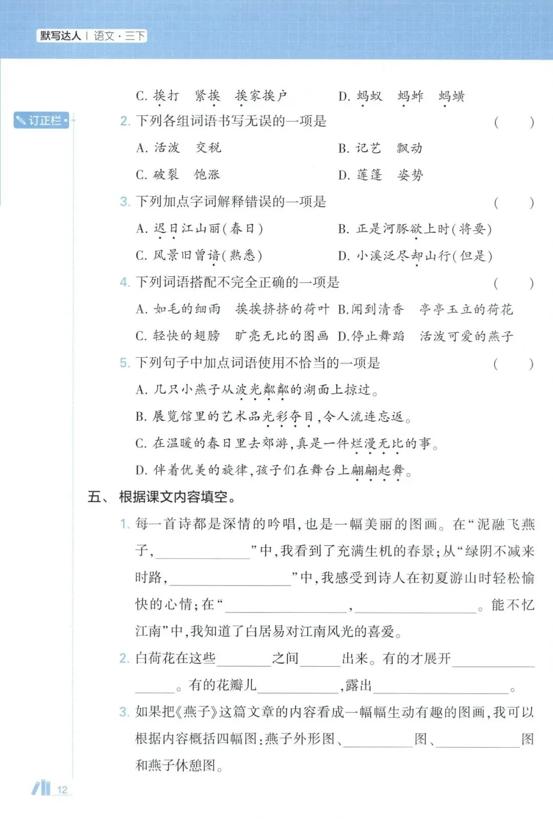 三年级语文下册《5星默写达人》(领高清PDF打印版)