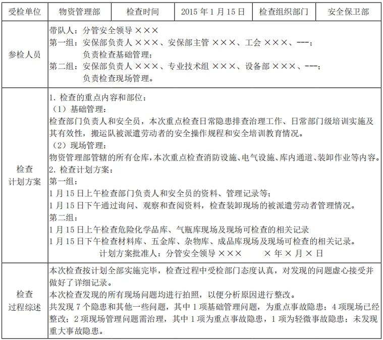 (1)为便于基层人员排查并判定隐患,可编制重点部位事故隐患排查表。