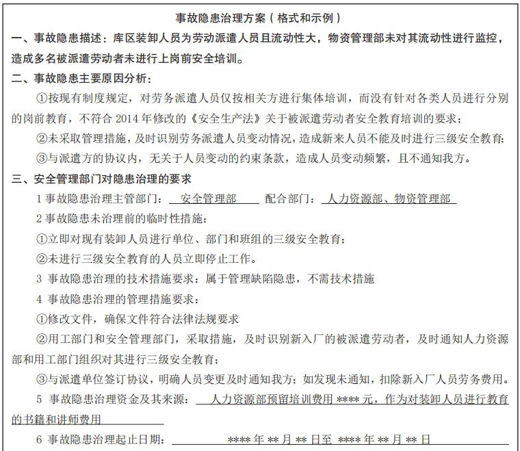 (2)可参考属地重点行业生产安全事故隐患目录。