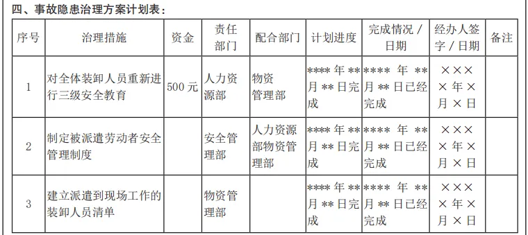 (3)公示内容:包括事故隐患所在部门 / 部位、治理责任部门和治理完成情况等。