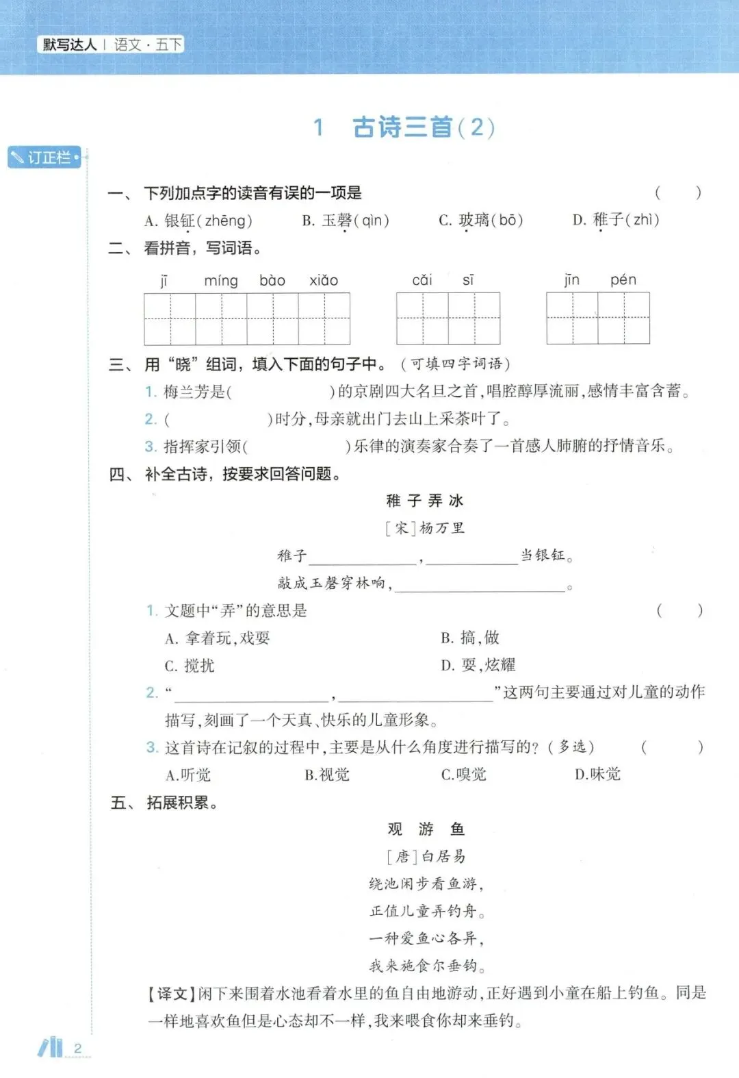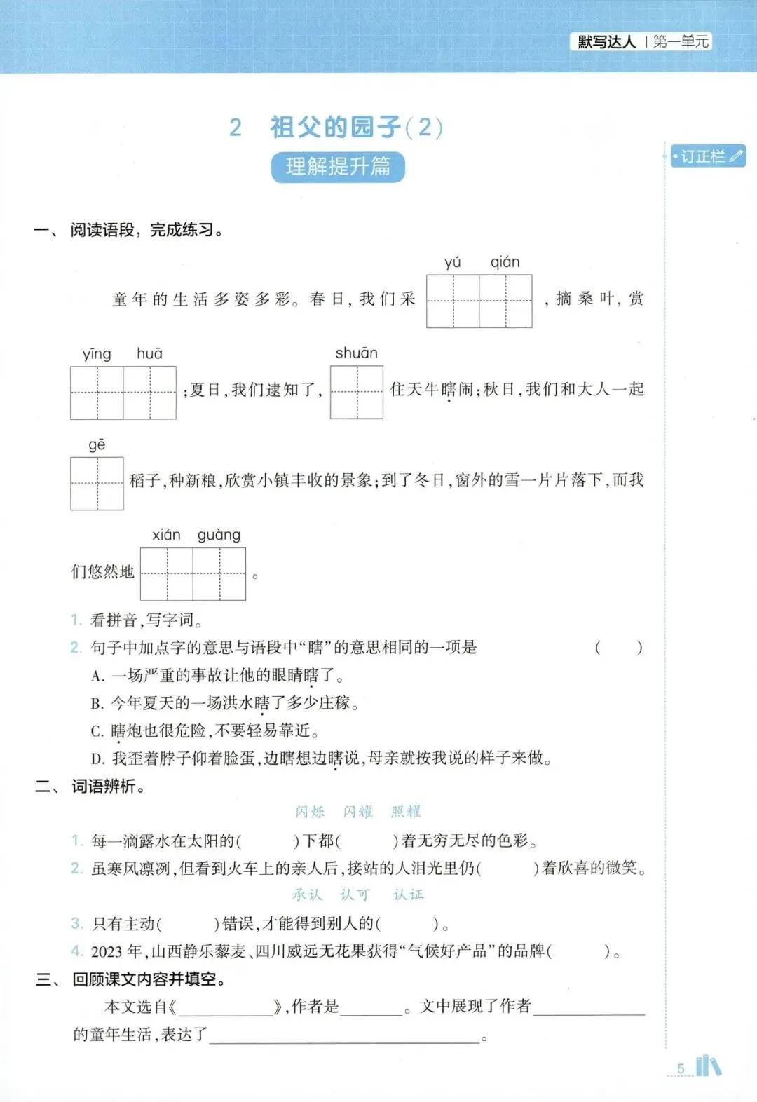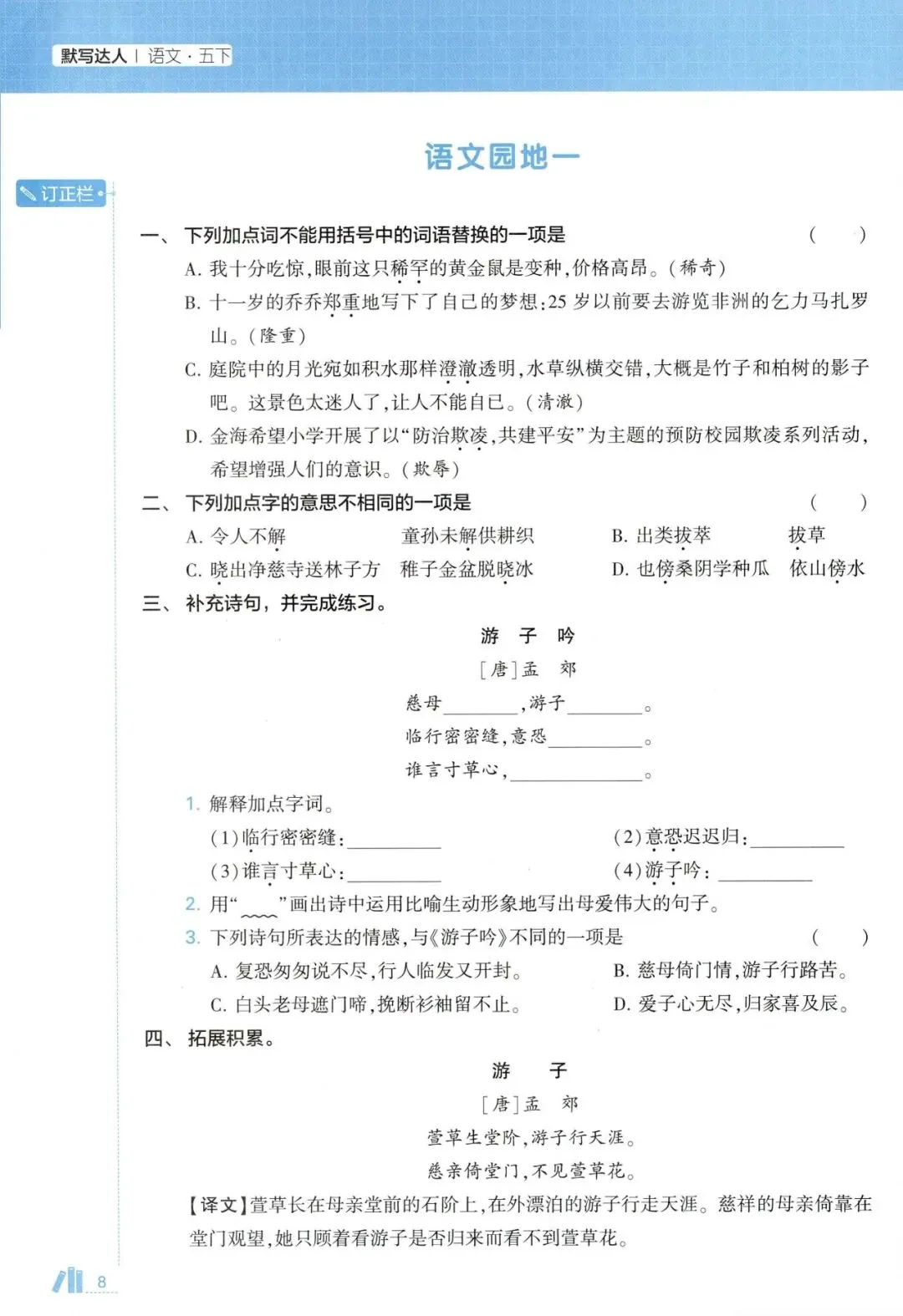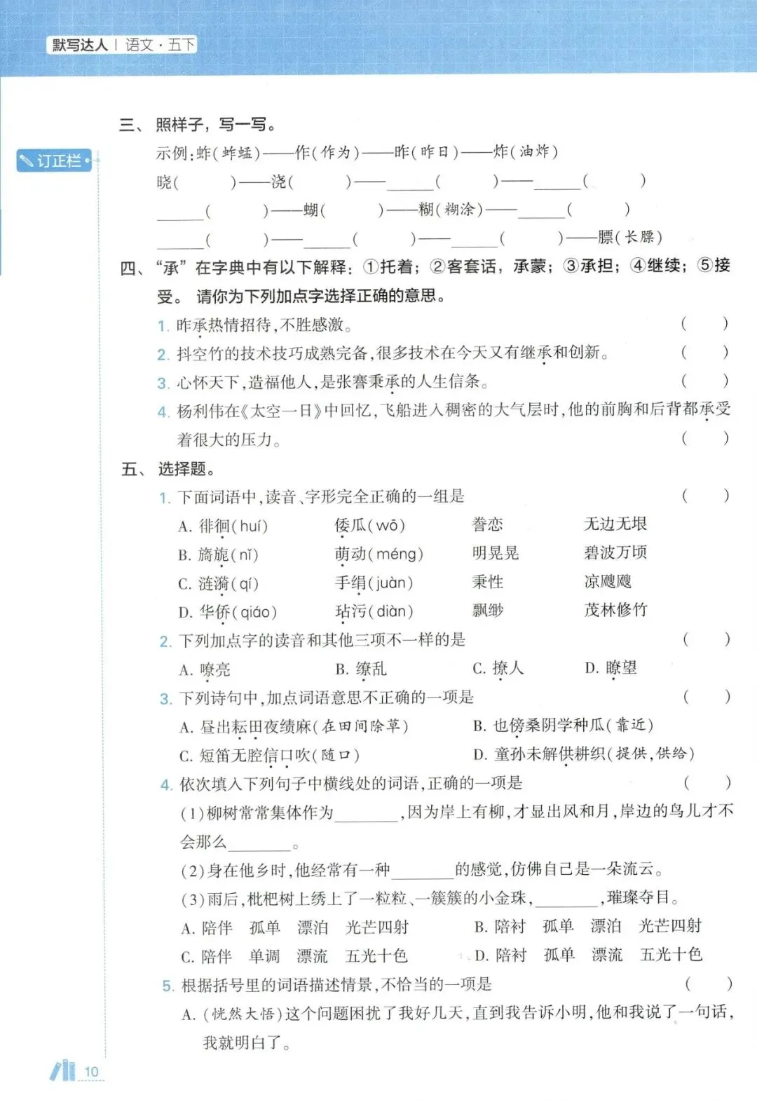 五年级语文下册《5星默写达人》(领高清PDF打印版)