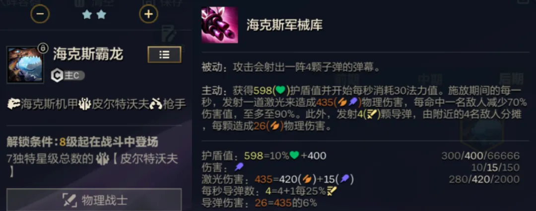 16.7版本堪称霸王龙的“逆袭狂欢”,基础攻击力从85飙升至110,近30%的数值暴涨直接把它从冷门棋子抬成版本毒瘤,这哪是小幅度加强,分明是设计师开了“数值作弊器”,再配上神器鱼骨头,直接解锁“全屏清场”的离谱战力!这哥们的技能机制本身就藏着暴力基因,被动普攻自带4颗弹幕子弹,AOE伤害拉满,主动技能一开更是化身移动炮台,598点护盾硬抗伤害,每秒还消耗30法力值疯狂输出,激光炮每发轰出435物理伤害,顺带泼洒4颗导弹让敌人分摊伤害,关键所有输出都吃物理加成,简直是为“堆攻击”玩法量身定做。