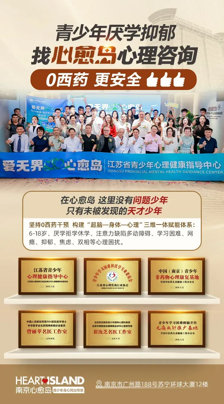 我们是江苏首家明确提出“非药物、去医疗化”的青少年身心脑康复中心。我们拒绝把孩子当成“病人”,在心愈岛,他们是被暂时“卡住”的少年天才。
