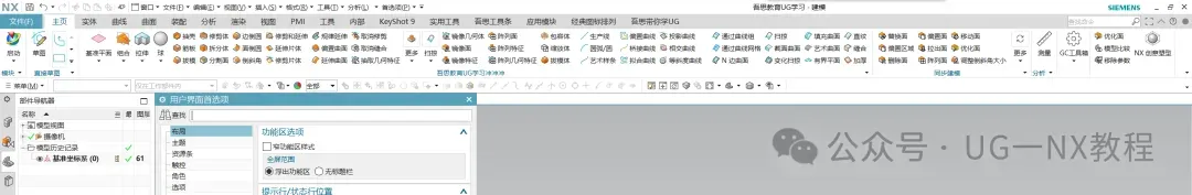 自从UG升级到UG12.029后,再也不能通过软件自带的用户界面首选项把布局切换为经典工具条,这让很多老师傅都不习惯,经常找命令都麻烦,那如何把高版本的UG功能页切换为经典命令条呢?