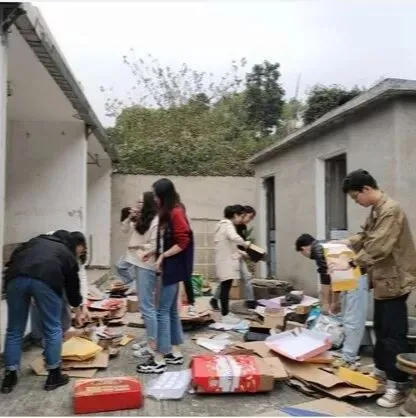 花坛清理和纸箱整理