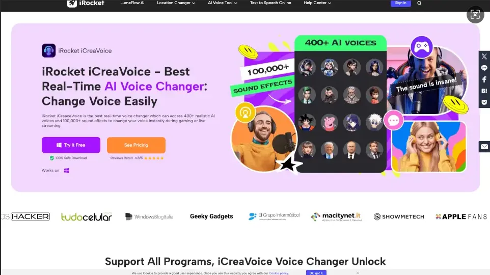3. 游戏/直播为主、需丰富音效:选iRocket iCreaVoice,实时零延迟,音效库丰富,适配各类网游与直播平台。