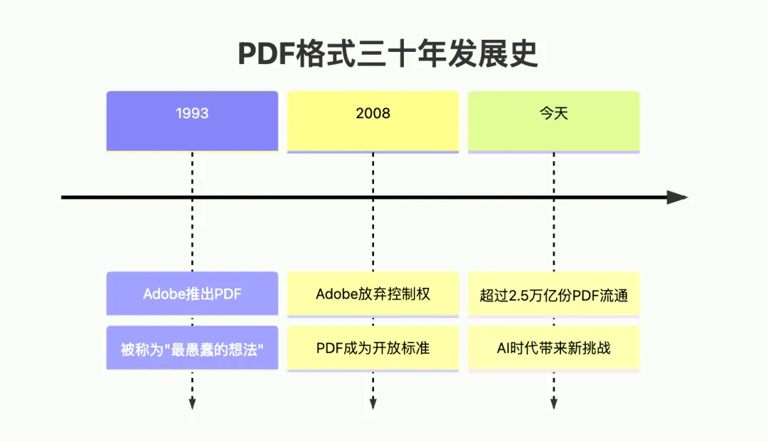 PDF格式自1993年诞生以来历经质疑,却最终成为全球数字文档的标准。如今AI时代来临,有人说PDF不适合大语言模型处理,它会被淘汰吗?本文探讨了这项有着30多年历史的文件格式在AI时代的命运。