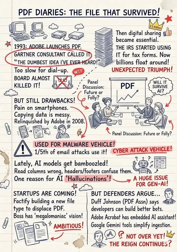 - 专家观点: 问题不在于PDF格式本身,而在于处理工具。Adobe、Google都在开发适配PDF的AI工具,PDF统治地位尚未终结。