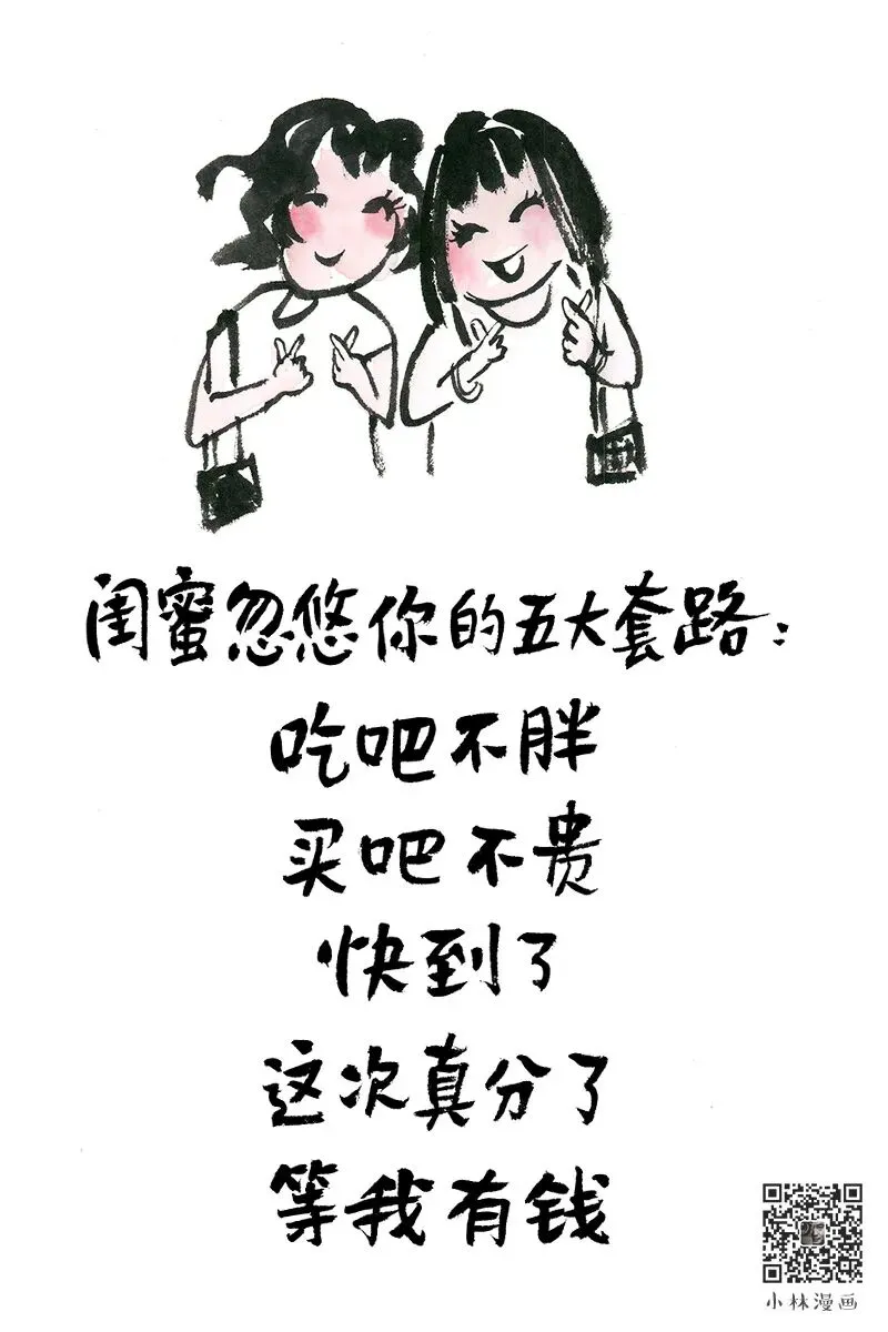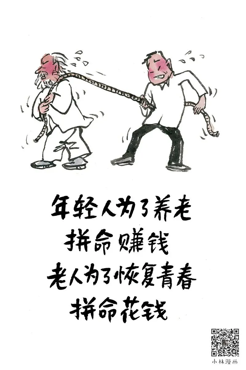非常喜欢小林老师的文字和漫画。小林漫画,融合传统水墨画与现代生活哲思,以自嘲式的幽默风格,揭开生活真相,寥寥数笔便勾勒都市人情冷暖,让人回味无穷,被誉为”当代丰子恺”。在此分享源于喜欢(侵删),希望有更多的人知道小林,能从中汲取力量。