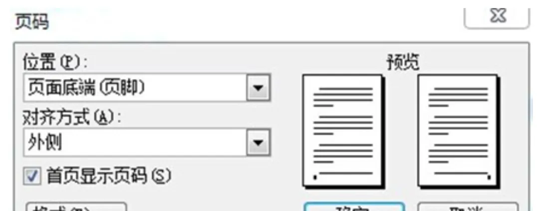 1. 选择“插入”→“页码”,“位置”设置为“页面底端(页脚)”,“对齐方式”设置为“外侧”。