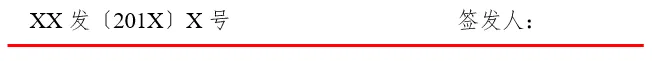 2. 上行文文号:文号→三号仿宋字体、左空一个字的距离;签发人→三号仿宋字体;签发人姓名→三号楷体、右空一个字的距离,编排在发文机关标识下空二行位置。