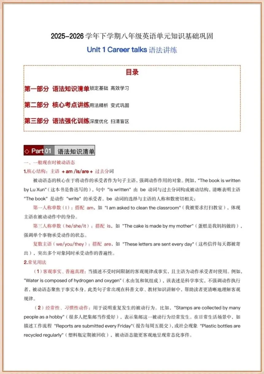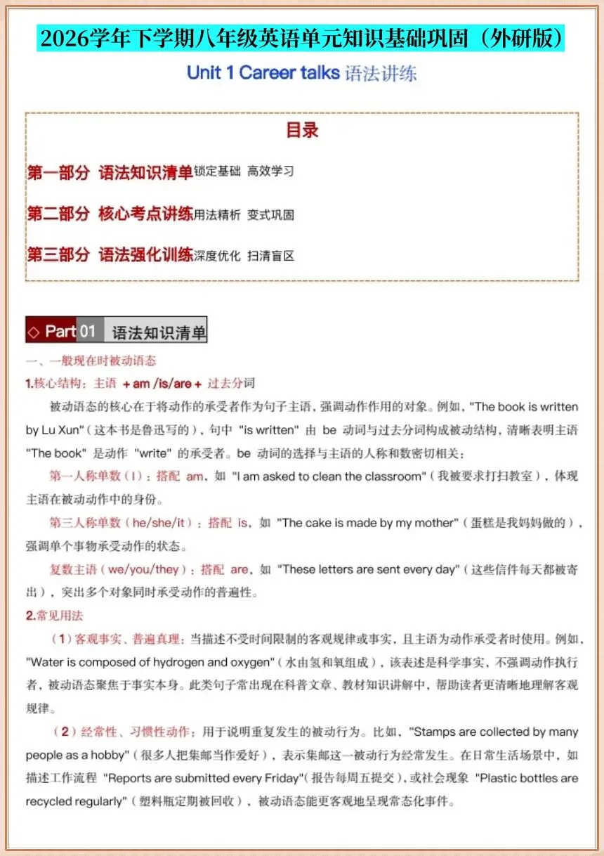 2026春新(外研版)八年级下册《英语》同步讲义语法讲练单元知识基础巩固,电子版可下载打印!